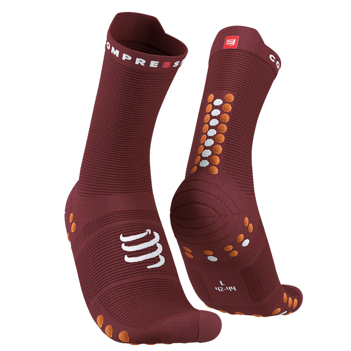 Compressport Pro Racing v4.0 Run High Compressiesokken Donkerrrood/Oranje