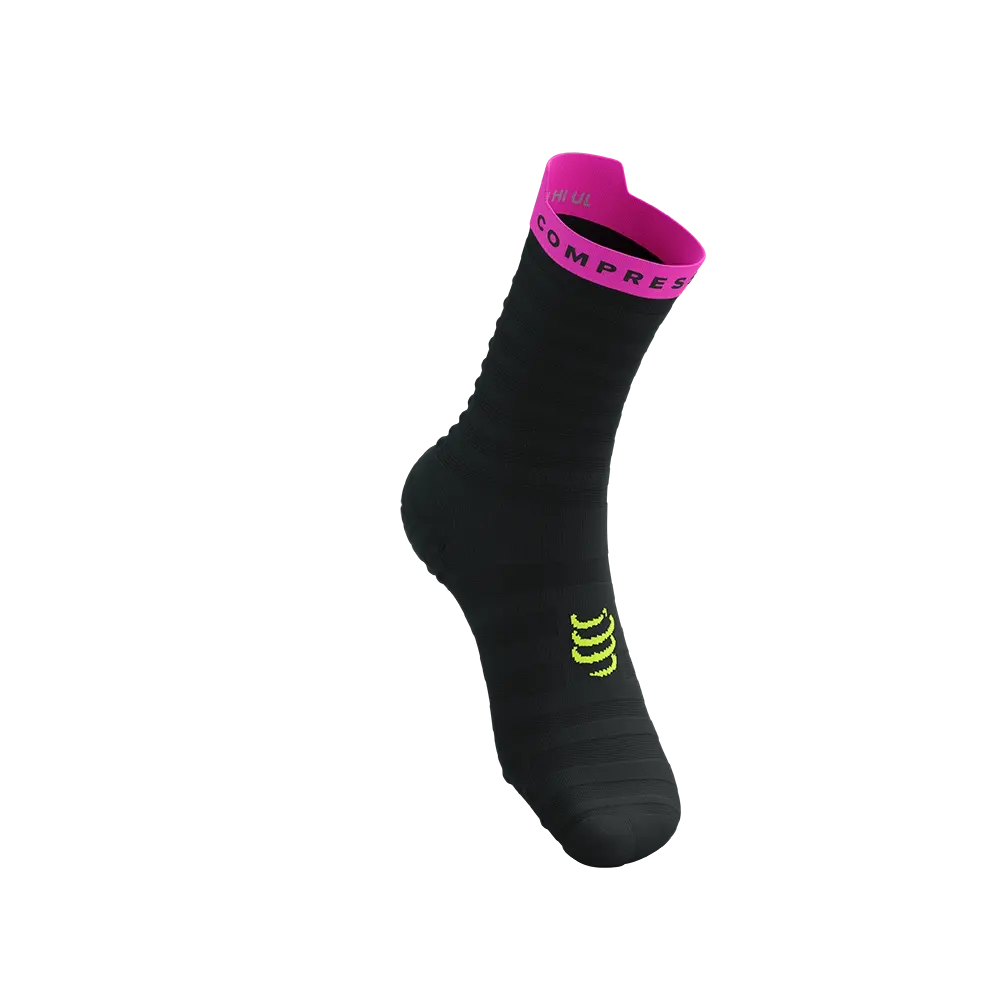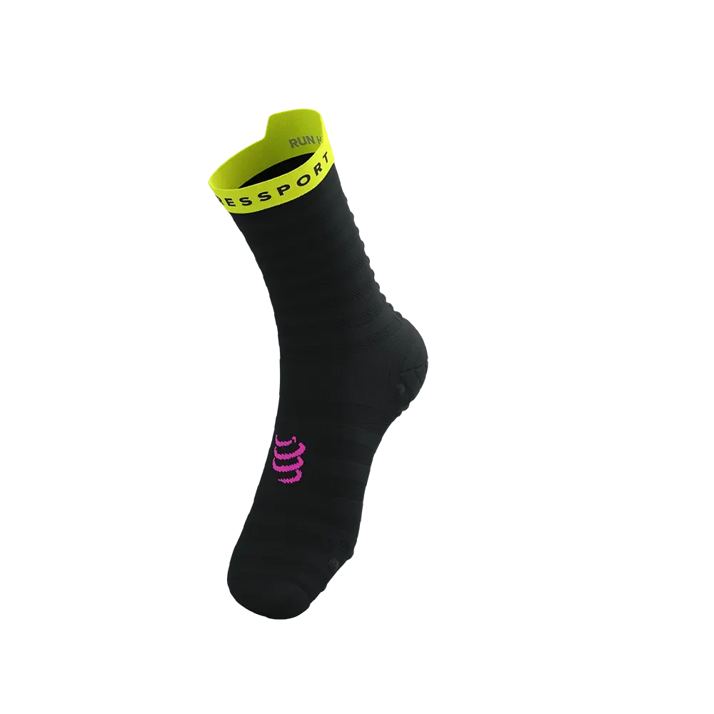 Compressport Pro Racing v4.0 Ultralight Run High Compressiesokken Zwart/Geel/Roze