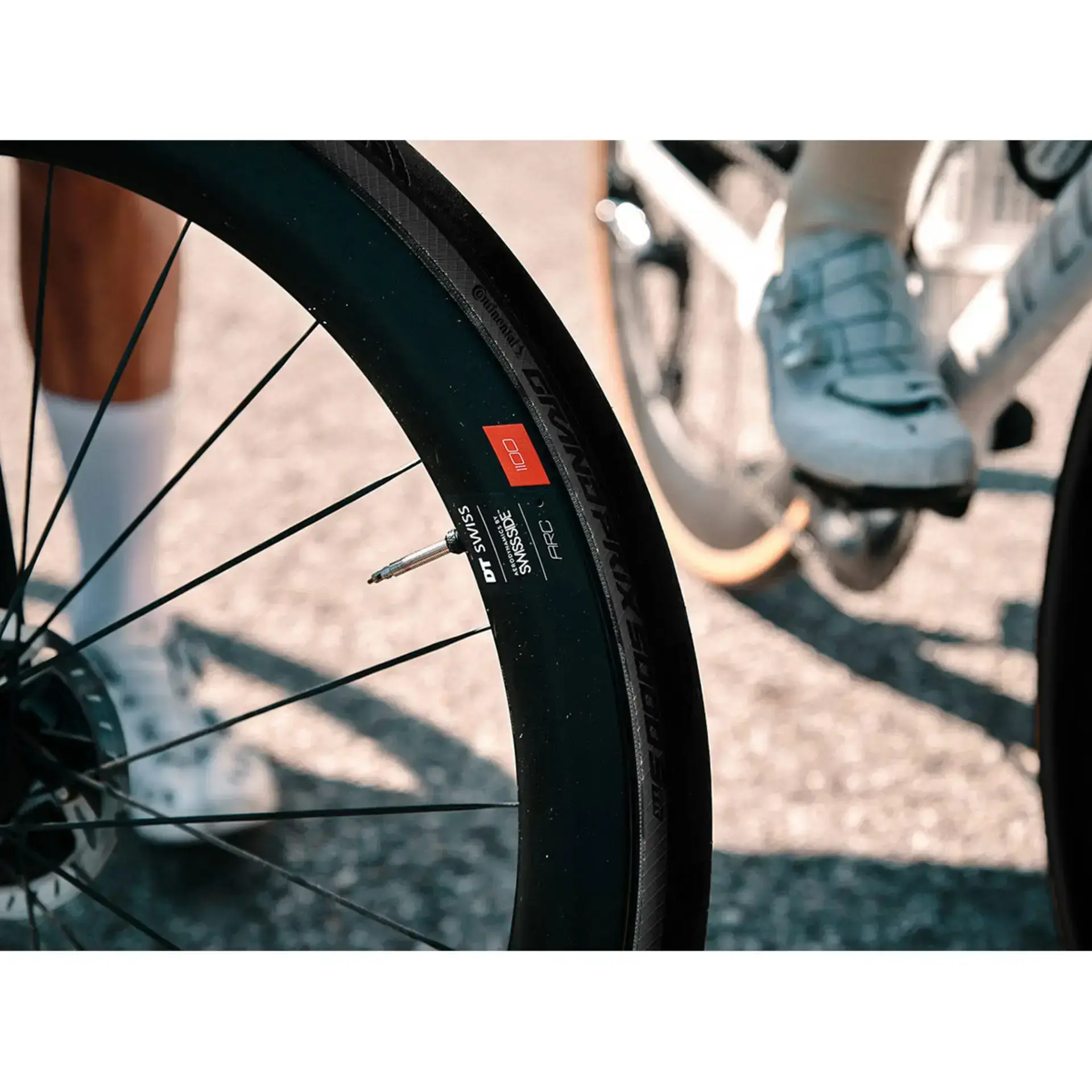 • Maximale bandenspanning 25mm op hookless velg: 5.0 bar