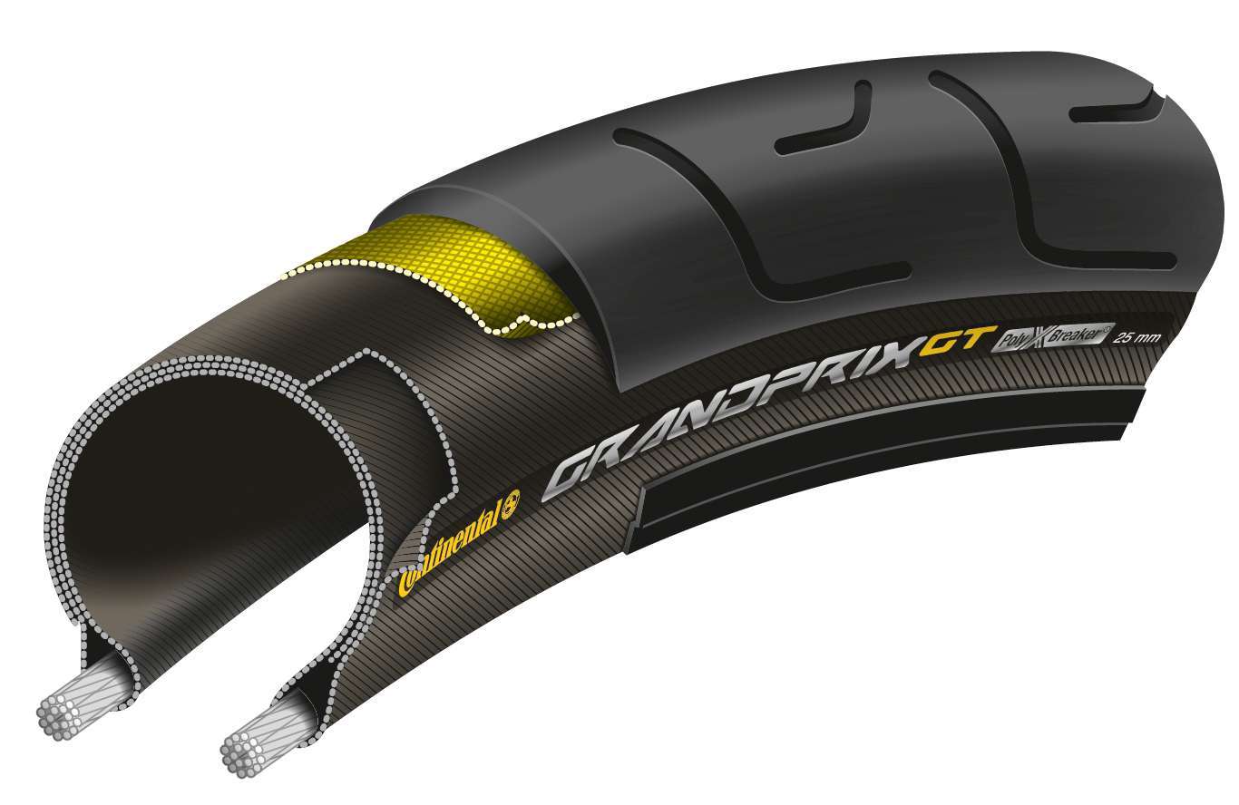 PolyXBreaker®Door nieuwe technieken is Continental erin geslaagd om de bestaande nylon breaker te verbeteren en te vervangen voor de nieuwe: PolyXBreaker®. Deze bescherming is eerst ontwikkeld voor de autobanden en wordt nu voor het eerst gebruikt in de nieuwe Grand Prix. Het basismateriaal bestaat uit polyester en als een speciale procedure wordt dit zo geweven dat de dichtheid extreem hoog wordt en daarmee als een lichte en zeer sterke anti-leklaag ter bescherming tegen doorns en scherpe voorwerpen gebruikt kan worden. PolyXBreaker® is zeer betrouwbaar en verliest geen rendement in rolweerstand en gewicht.