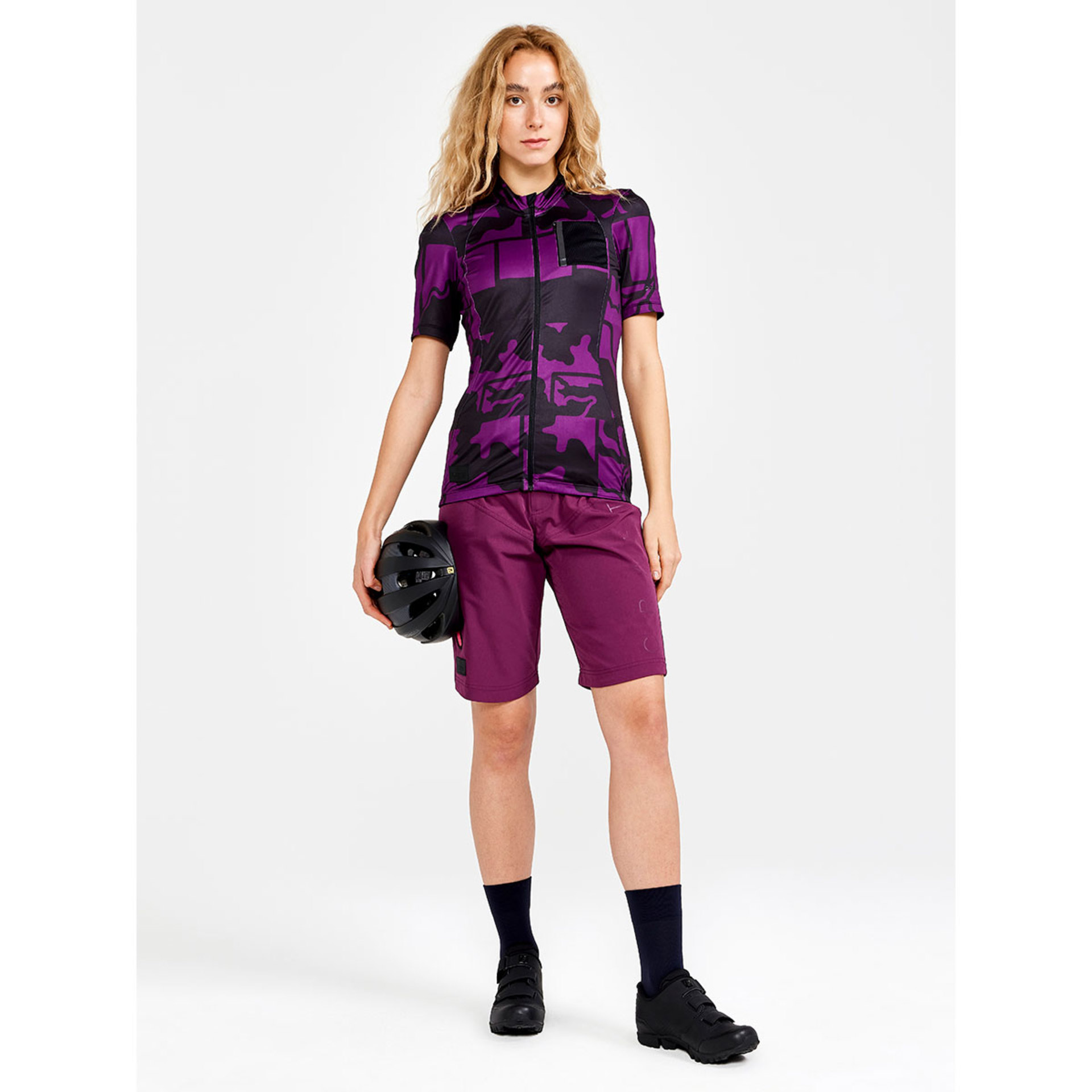 Craft ADV Bike Offroad Fietsshirt Korte Mouwen Paars/Zwart Dames