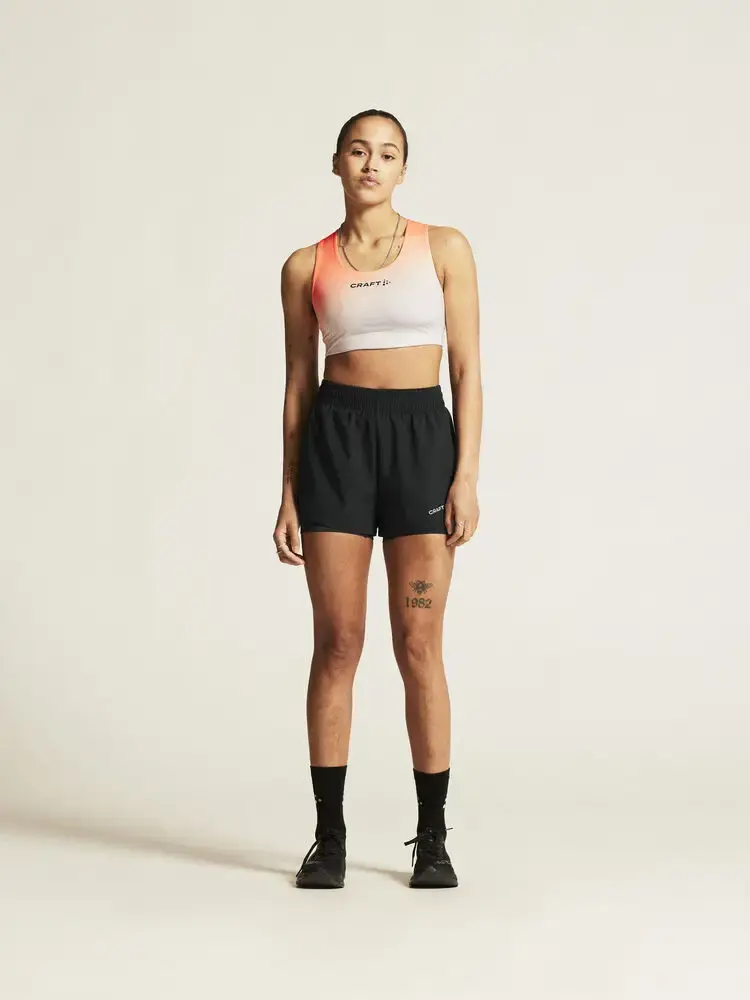 Stel je vraag over de Craft ADV Essence 2 2-IN-1 Hardloopbroek Kort Zwart Dames.