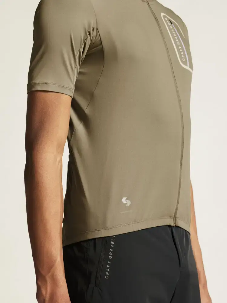 Het geavanceerde Craft ADV offroad fietsshirt is gemaakt van licht, rekbaar gerecycled polyamide en is functioneel een duurzaam. Het materiaal zorgt voor uitstekend vochttransport, wat ideaal is voor je intensieve ritten. Het shirt is voorzien van maar liefst 5 zakken, waarvan 2 met rits. Voldoende mogelijkheden voor het meenemen van je accessoires en voeding. De siliconen grippers in de onderzoom houden het shirt in iedere positie op de plek. Speciaal voor het dragen van een rugzak tijdens je ritten is er een siliconen print aangebracht op de schouders. Deze prints geven grip, zodat je rugzak goed blijft zitten. Voor je vroege en late ritten heeft Craft reflecterende prints aangebracht, zodat je goed opvalt.