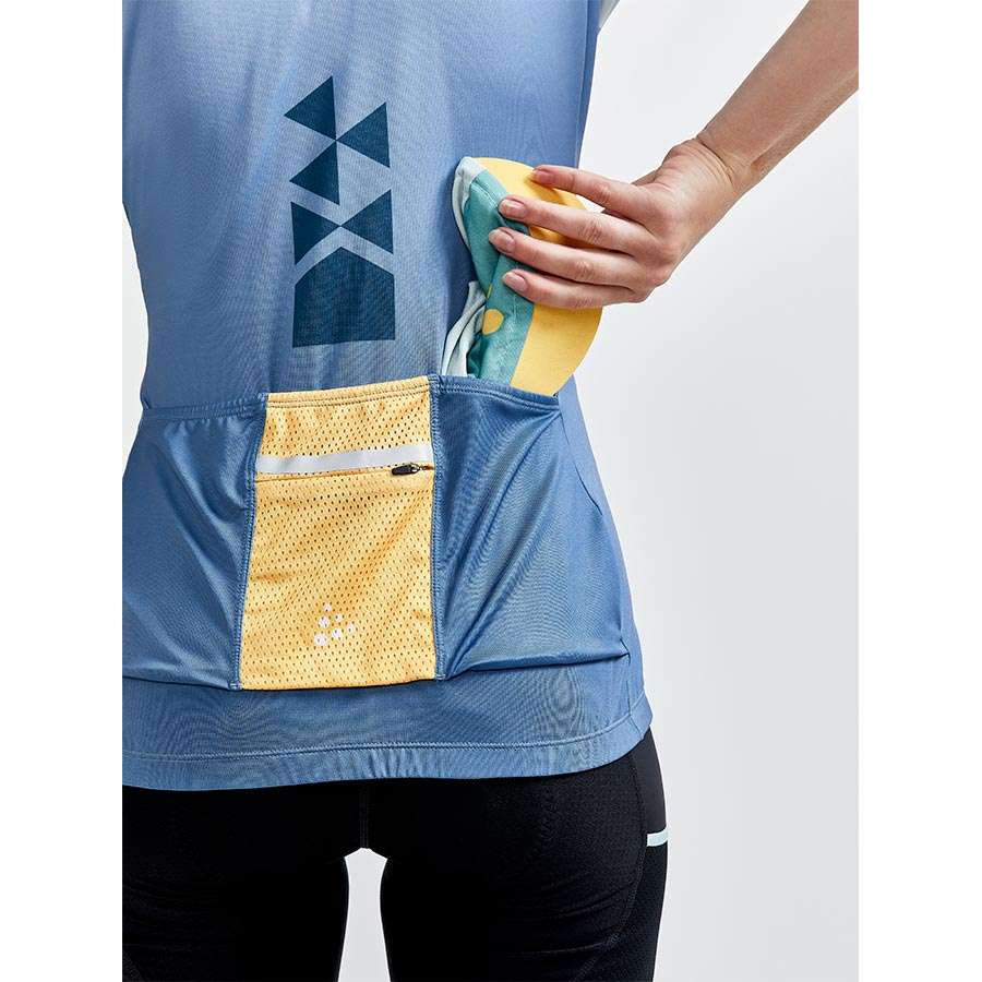 Stel je vraag over de Craft ADV HMC Gravel Offroad Fietsshirt Korte Mouwen Blauw/Geel Dames.