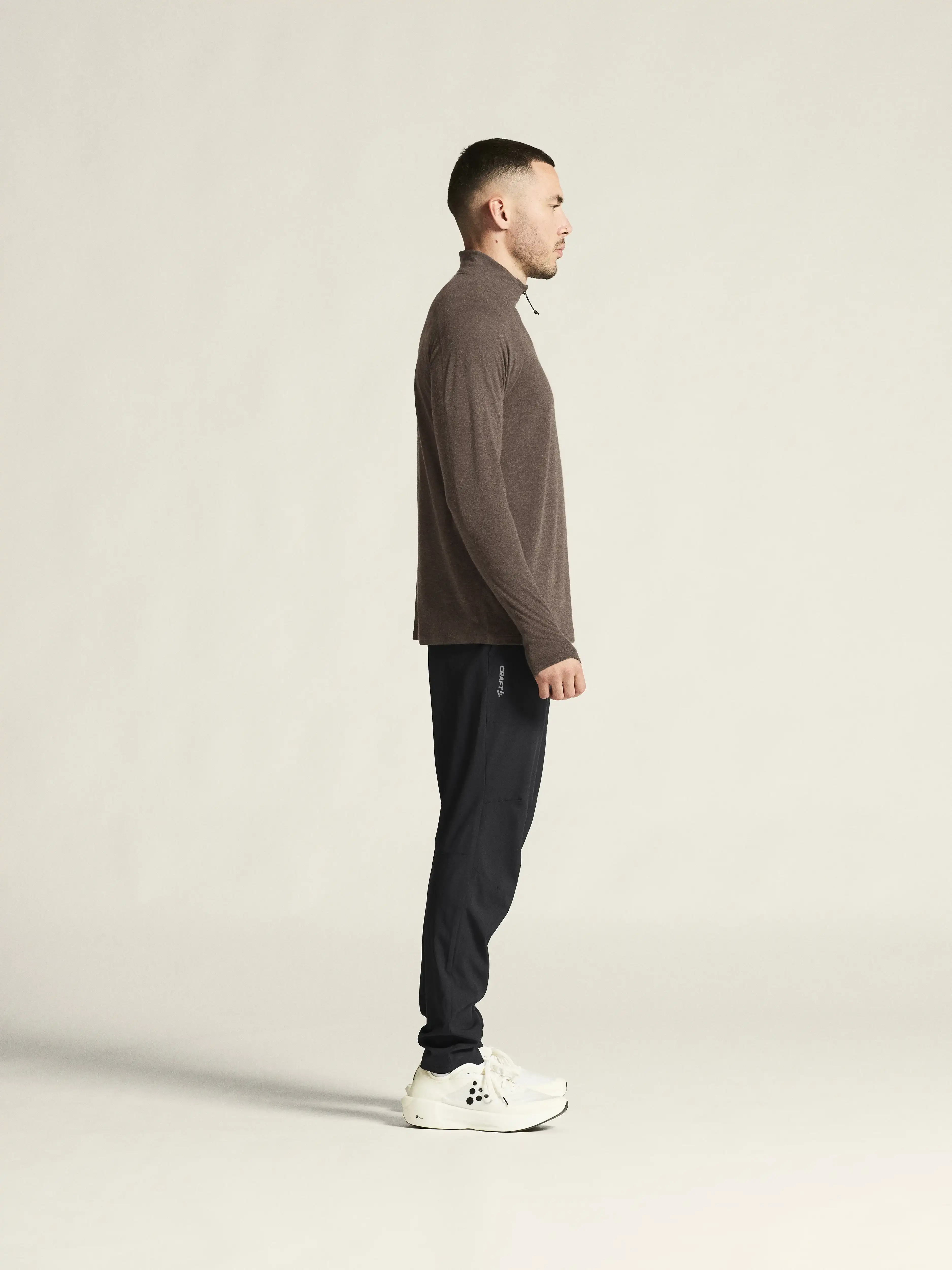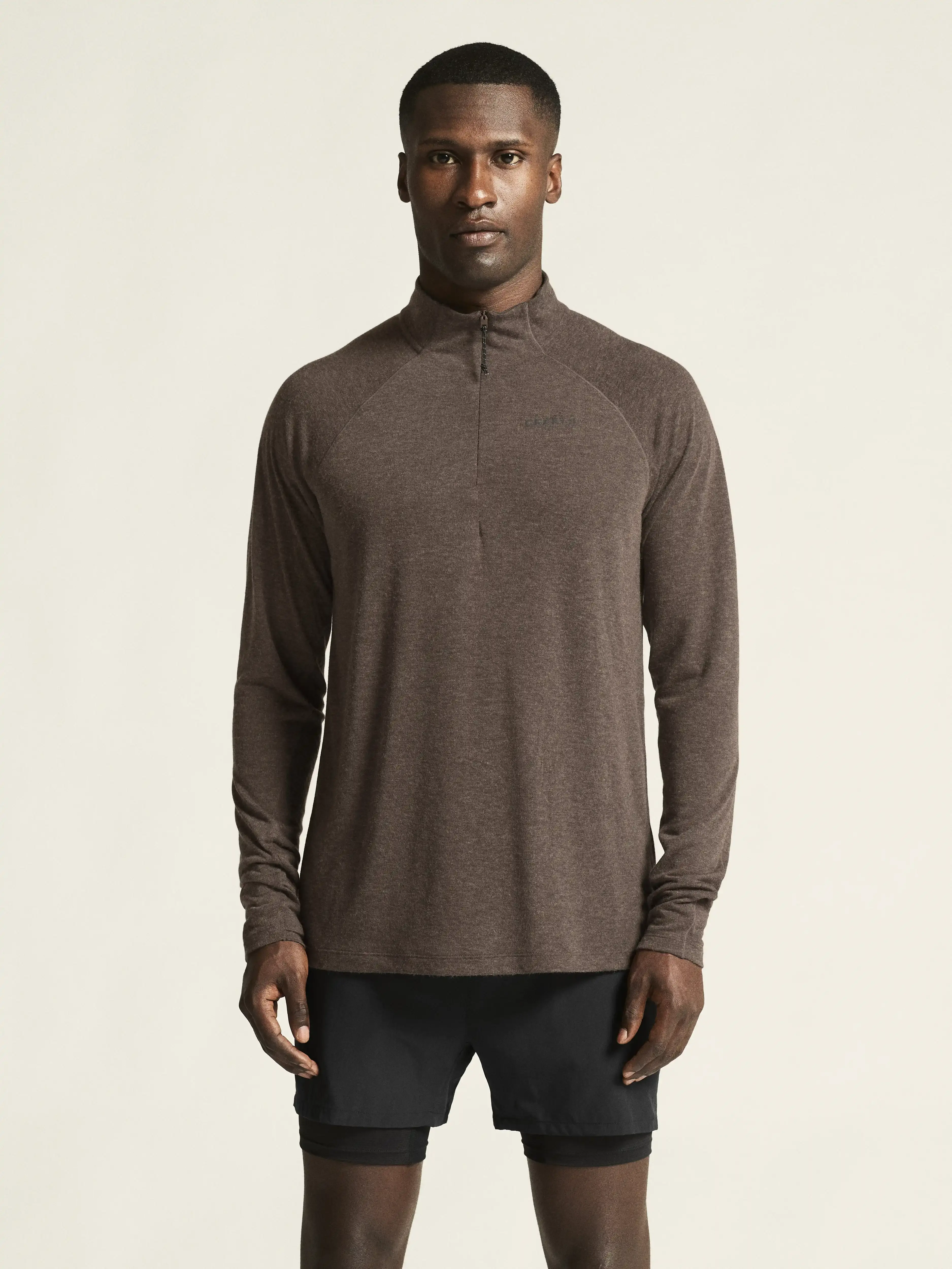 Craft Wool Hardloopshirt Lange Mouwen Bruin Melange Heren
