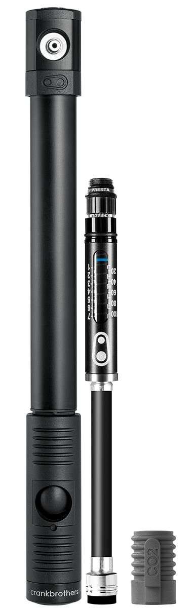Stel je vraag over de Crankbrothers Klic HP Manometer Minipomp/CO2-Pomp Midnight Edition.