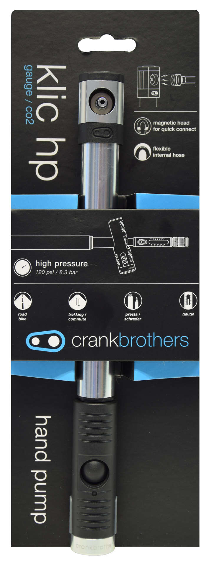 Deze Crankbrothers Klic HP Minipomp is super handig voor onderweg. Deze minipomp heeft een flexibele slang en een magnetische pompkop. Ook is hij voorzien van een verborgen drukmeter. Deze High Pressure minipomp pompt tot wel 120psi/8.3 bar.