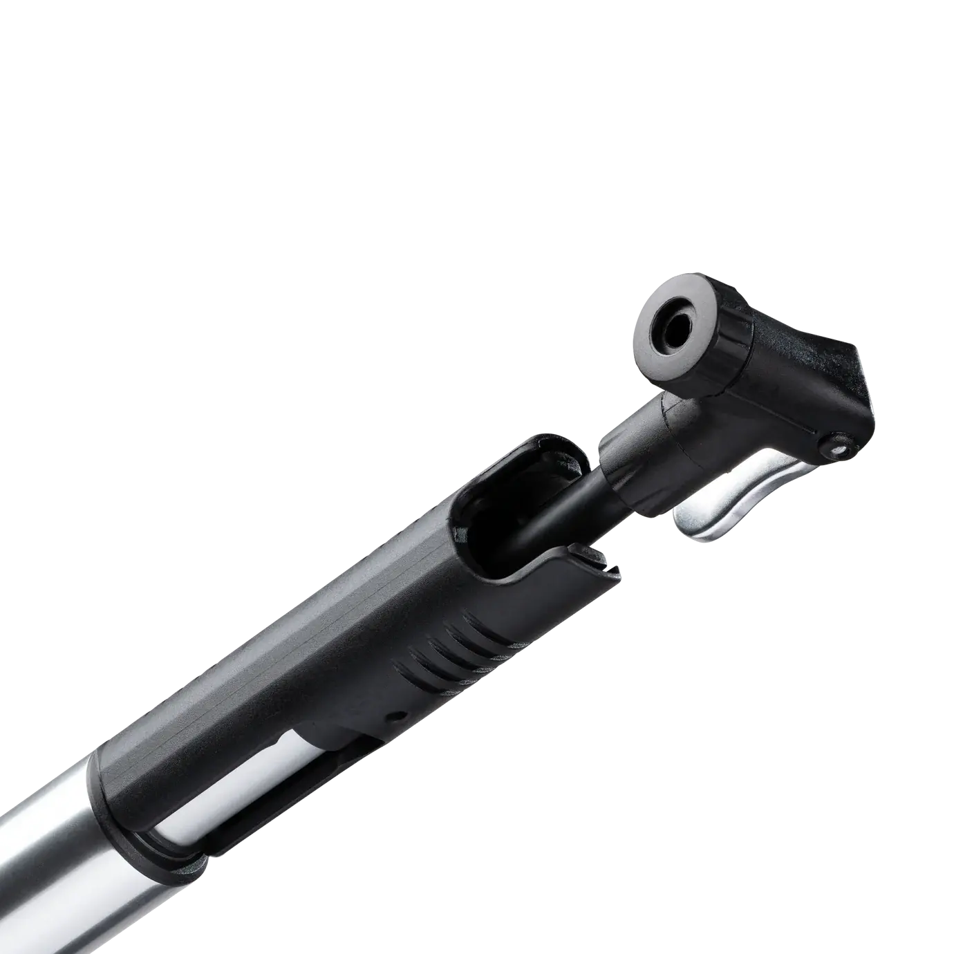 De Crankbrothers Klic HV Mini Vloerpomp is een lichtgewicht en efficiënte pomp die ideaal is voor avontuurlijke fietsers. De verborgen slang en magnetische quick-connect zorgen voor een compact ontwerp, terwijl het uitklapbare voetsteun voor extra stabiliteit zorgt bij het oppompen. Met een hoog luchtvolume en een maximale druk van 7,5 bar (110 PSI) is deze pomp perfect voor bredere banden. Dankzij de verwisselbare presta/schrader-ventielkop en de robuuste constructie is dit de ultieme metgezel voor onderweg.