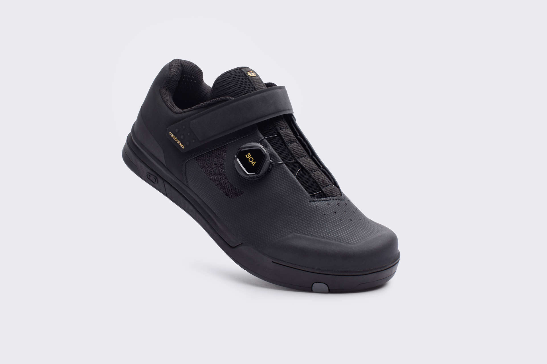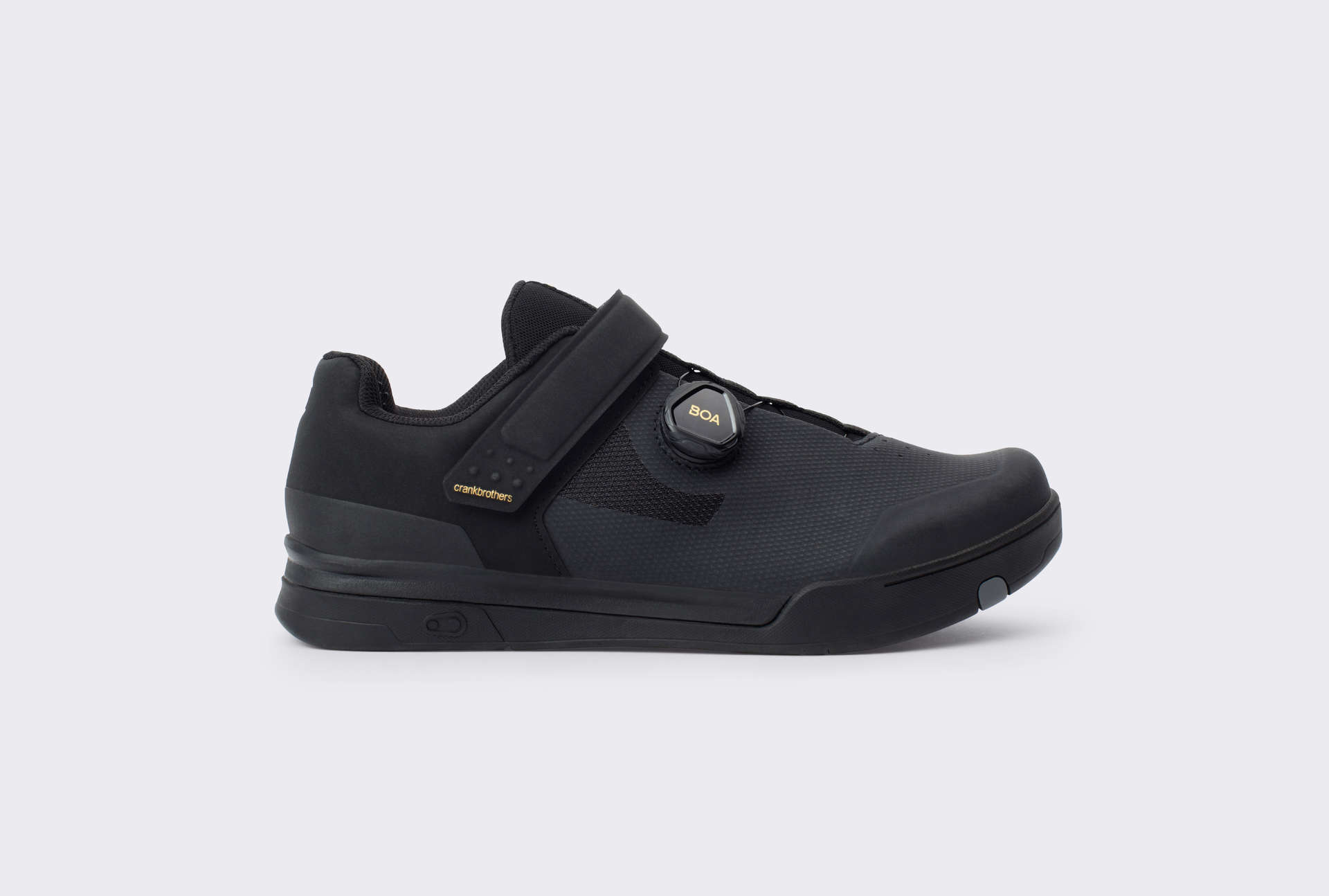 De Crankbrothers Mallet Boa Strap Downhillschoenen zijn geschikt voor allerlei disciplines en te gebruiken met alle MTB-pedalen. De zool biedt voldoende grip op platte pedalen, maar heeft ook een aansluiting voor SPD-schoenplaatjes. De schoenen worden geleverd met voorgemonteerde Crankbrothers-schoenplaatjes, waardoor je deze meteen kunt gebruiken met Crankbrothers-pedalen. Een tussenzool is gemaakt van EVA-schuim om zo de klappen en trillingen van de trails op te vangen. Rondom de tenen geven de schoenen net wat meer ruimte om zo voor comfort te zorgen wanneer je stukjes moet lopen. Je stelt de schoen razendsnel af met de BOA-sluiting in combinatie met een klittenbandstrap. De gewatteerde tong zorgt voor extra comfort.