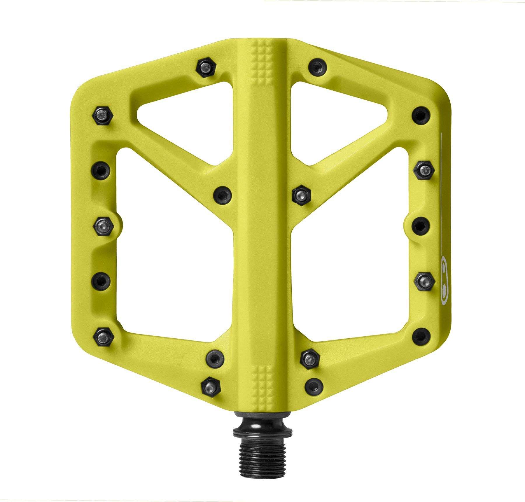 De Crankbrothers Stamp 1 pedalen zijn al jaren populair, maar nu ook te verkrijgen in unieke kleurstellingen! De pedalen zijn gemaakt van een kunststof composiet en gaan daardoor vele jaren mee. Het pedaal beschikt over 9 hoge pinnen per zijde, die zorgen voor enorm veel grip op de pedalen. Het pedaal is 100 x 100 mm breed in maat small en 114 x 111 mm in maat large en beeft daardoor veel ondersteuning. De lagers zijn van hoge kwaliteit en goed afgedicht, waardoor er nauwelijks onderhoud nodig is.