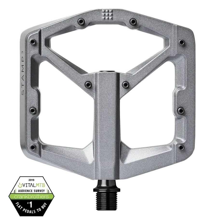 De Crankbrothers Stamp 3 MTB Pedalen hebben een groot oppervlak voor drukverdeling en zijn zeer geschikt voor Trail, Enduro, Freeride en Downhill moutainbiken. Deze Stamp 3 pedalen hebben geen kliksysteem en vuil en modder blijft niet in de pedalen zitten. Zo blijven je pedalen schoner en gaan ze langer mee. De pedalen en de body zijn gemaakt van ultralicht magnesium. Het pedaal bevat 10 pinnen aan beide zijden die zijn aan te passen voor de optimale grip. De pedalen zijn voorzien van Igus lagers (binnen) en Enduro lagers (buiten). Deze pedalen bieden optimaal contact tussen je schoen en het pedaal.