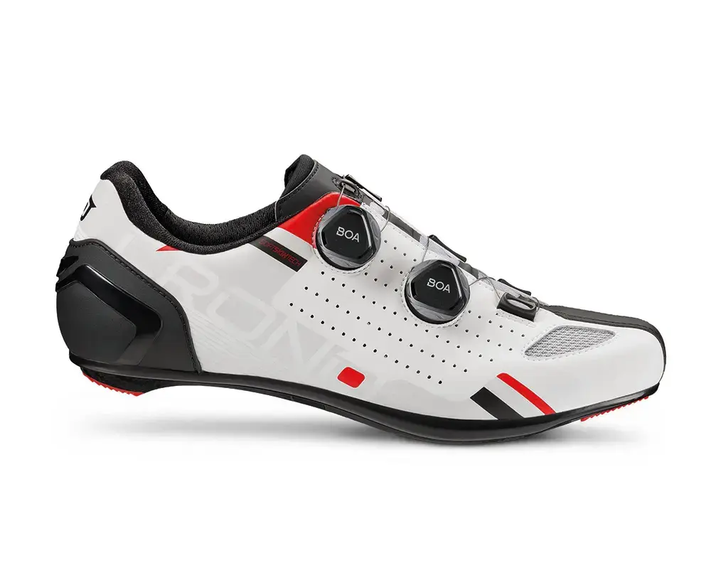 De Crono CR-2 Carbon Raceschoenen zijn zeer elegant en zijn voorzien van alles wat je van een goede schoen mag verwachten. De schoenen hebben een goed ademende bovenzijde die voorzien is van een L6 Boa sluiting. Deze sluiting maak het mogelijk met een hand je schoen te verstellen zodat hij altijd perfect zit. De tong is gemaakt van memory foam en sluit hiermee erg fijn op je wreef aan. De zool van deze schoen is gemaakt van erg stijf carbon. Hierdoor gaat al je kracht over in snelheid en verlies je niks. De schoenen zijn voorzien van inlegzolen die schokken erg goed absorberen.