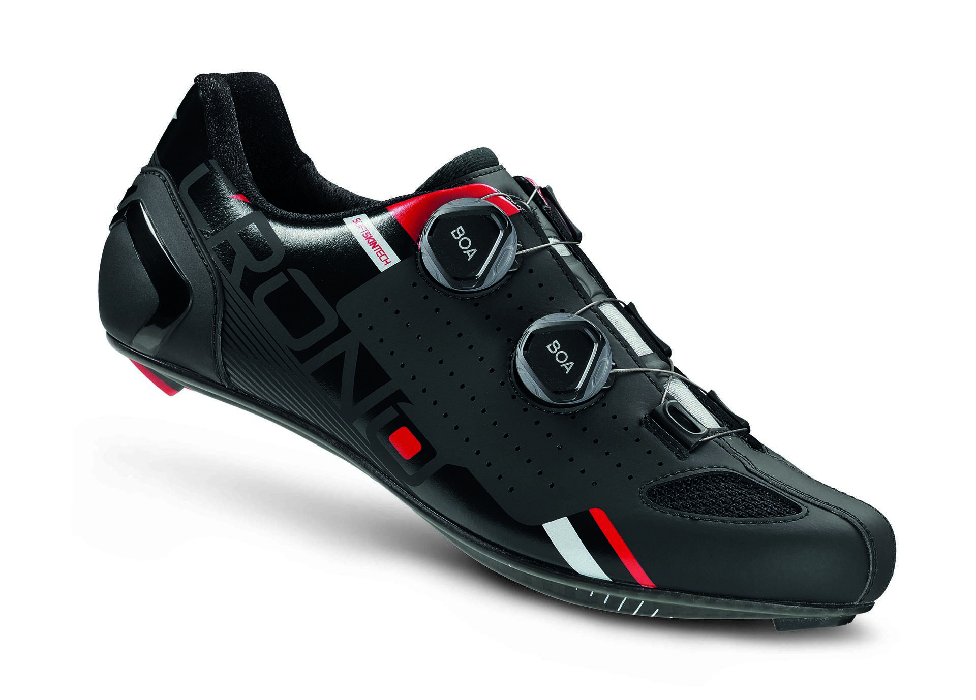 De Crono CR-2 Comp Raceschoenen zijn zeer elegant en zijn voorzien van alles wat je van een goede schoen mag verwachten. De schoenen hebben een goed ademende bovenzijde die voorzien is van een L6 Boa sluiting. Deze sluiting maak het mogelijk met een hand je schoen te verstellen zodat hij altijd perfect zit. De tong is gemaakt van memory foam en sluit hiermee erg fijn op je wreef aan. De zool van deze schoen is gemaakt van een carbon compsite. Deze is iets minder stijf dan een volledig carbon zool en biedt daardoor iets meer comfort. Daarnaast zijn de schoenen voorzien van inlegzolen die schokken erg goed absorberen.