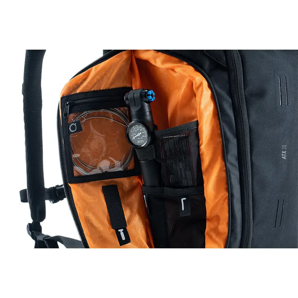 De CUBE ATX 30 fietsrugzak biedt ruimte voor alle benodigdheden die je nodig hebt tijdens lange tochten. Een optimale pasvorm is te danken aan CUBE's eigen Natural Fit-rugsysteem dat in eigen beheer is ontwikkeld met bijvoorbeeld gevoerde heupbanden. Het gewicht wordt comfortabel verdeeld, terwijl goede vulling en ventilatie je rug fris houden. Het veelzijdige MOLLE-systeem maakt het ook gemakkelijk om de CUBE GEAR BAG 1 (niet meegeleverd) veilig te bevestigen met klittenband voor praktische extra opbergruimte. Compressiebanden aan de zijkanten zijn ideaal om je jas of beschermers snel op te bergen. Door goed ontworpen vakken, een extra gereedschapsvak en een zijvak voor je smartphone heb je de belangrijkste spullen binnen handbereik. En met een drinkzakvak en een regenhoes meegeleverd, heeft deze rugzak alles wat je nodig hebt om van de tour een succes te maken.