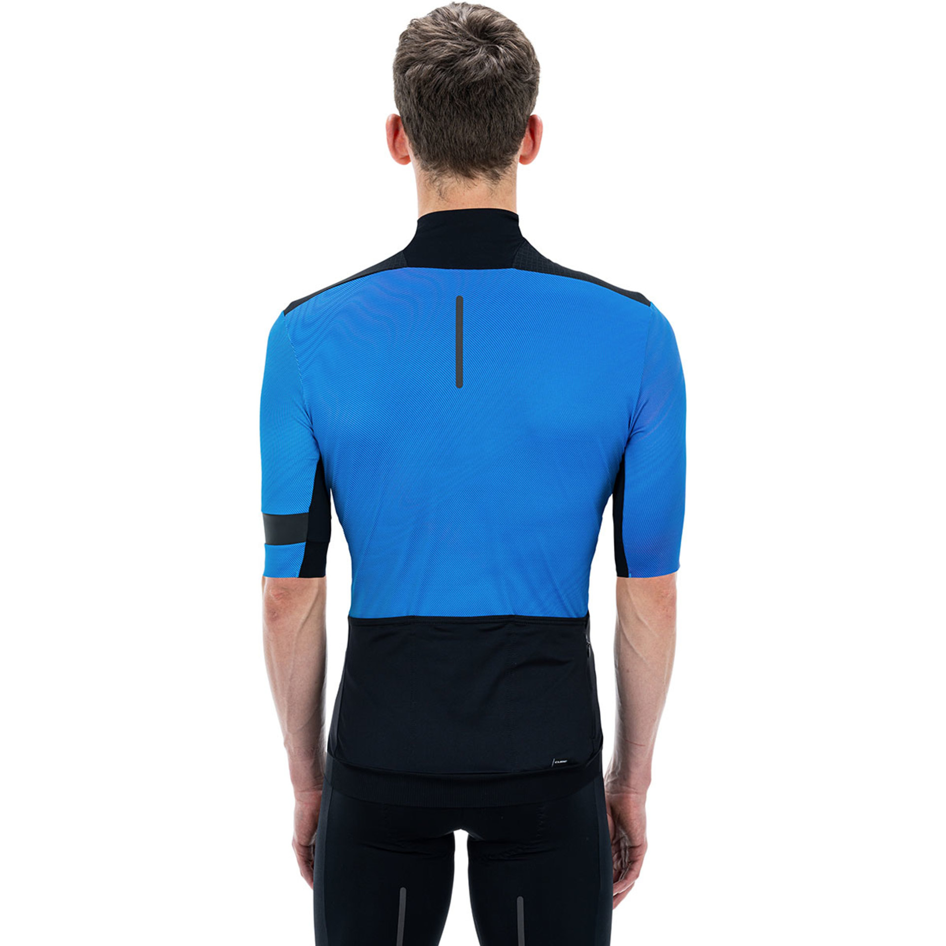 Met het klassiek ogende Cube Blackline Fietsshirt met korte mouwen kun je iedere ambitieuze en recreatieve rit aan. Het shirt oogt ingetogen en klassiek, maar heeft de functionaliteit van een hedendaags wielershirt. Het shirt zit niet alleen ontzettend comfortabel door de atletische slimfit pasvorm, maar het biedt ook veel opbergmogelijkheden en reflecterende elementen voor een goede zichtbaarheid. Er is zelfs een extra waterdicht opbergzakje aangebracht. Of je nu in het donker gaat fietsen, of in regenachtige omstandigheden, het Blackline fietsshirt van Cube is altijd geschikt. Het materiaal is tevens licht en sneldrogend en sluit goed aan dankzij de atletische pasvorm en de aansluitende siliconen tape aan de onderzijde.