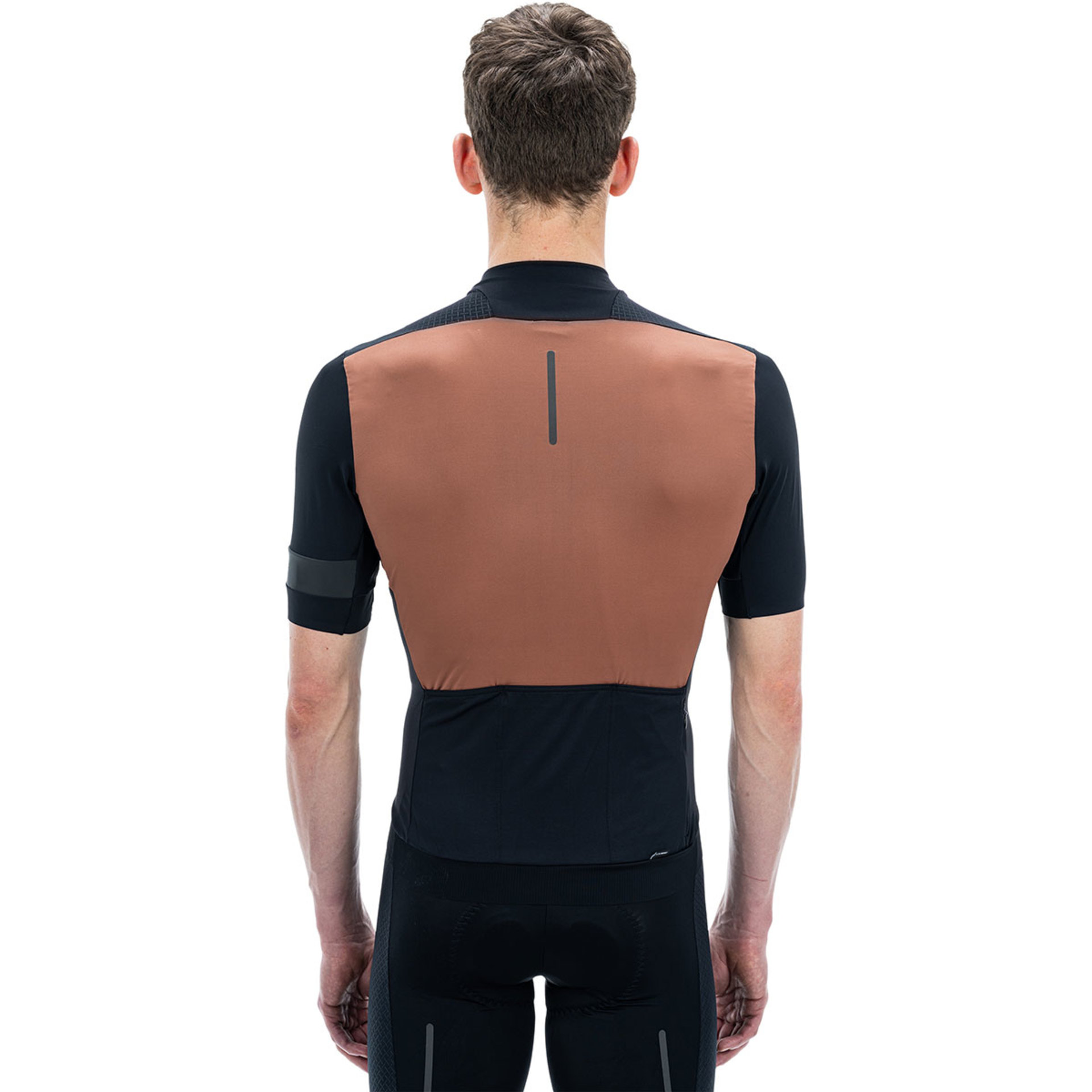 Met het klassiek ogende Cube Blackline Fietsshirt met korte mouwen kun je iedere ambitieuze en recreatieve rit aan. Het shirt oogt ingetogen en klassiek, maar heeft de functionaliteit van een hedendaags wielershirt. Het shirt zit niet alleen ontzettend comfortabel door de atletische slimfit pasvorm, maar het biedt ook veel opbergmogelijkheden en reflecterende elementen voor een goede zichtbaarheid. Er is zelfs een extra waterdicht opbergzakje aangebracht. Of je nu in het donker gaat fietsen, of in regenachtige omstandigheden, het Blackline fietsshirt van Cube is altijd geschikt. Het materiaal is tevens licht en sneldrogend en sluit goed aan dankzij de atletische pasvorm en de aansluitende siliconen tape aan de onderzijde.