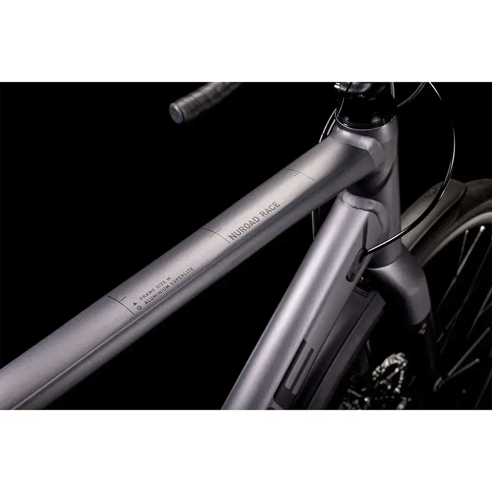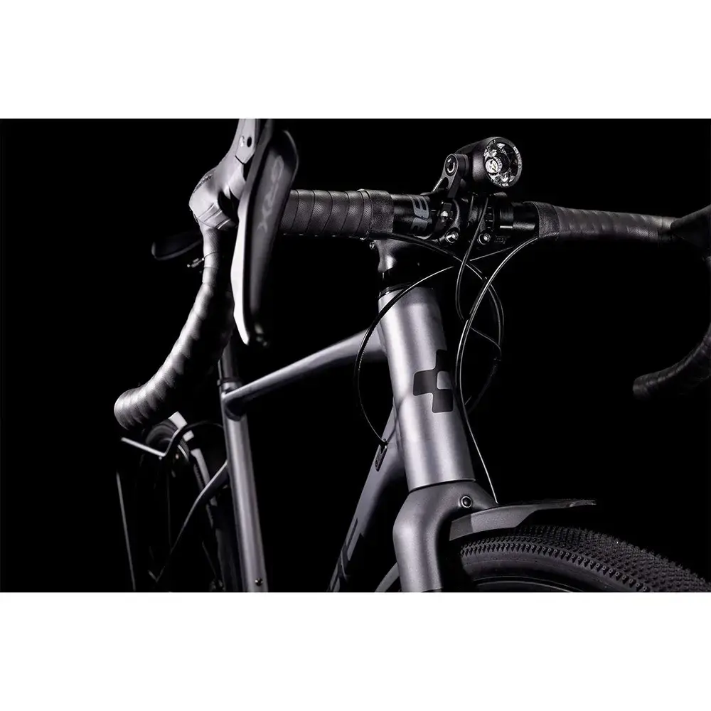 De Cube Nuroad Race FE is een heel bijzondere gravelbike: kant en klaar geleverd en altijd en overal bruikbaar! De prachtige gravelracer wordt standaard geleverd met een zeer luide minibel, een naafdynamo die de zeer heldere voor- en achterverlichting van energie voorziet en spatborden voor- en achter. Deze fiets is dus uitermate voor woonwerkverkeer! Maar ook voor de echte snelheidsduivels onder ons is het een zeer geschikte keuze! De 40mm brede banden zijn smal genoeg om rap te gaan en breed genoeg om toch veel comfort te ervaren. Het racestuur biedt je de mogelijkheid in een aerodynamisch houding te gaan zitten en er vol op te knallen. Het verzet dankzij Shimano GRX uniek: 46-30 voor en 11-34 achter. Genoeg om flink hard te gaan maar ook zeker geschikt voor de meest steile heuvels. Met deze fiets haal je in één alles in huis: een stadsfiets, toerfiets en racemonster. Gravelbike met zeer hoge prijskwaliteitverhouding.