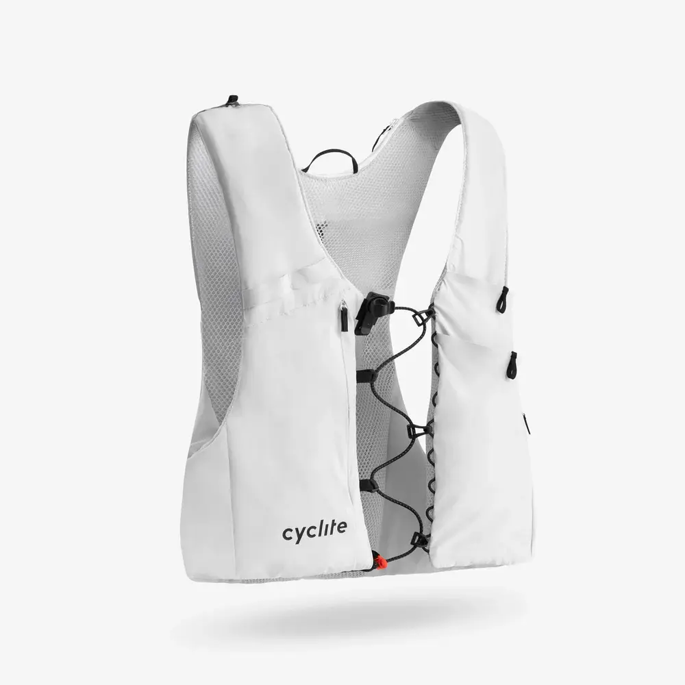 De Cyclite Drinkrugzak is met zijn sportieve snit en elastische 4-way stretch nylon perfect afgestemd op de ergonomie van het bovenlichaam. Hierbij blijft de toegang tot de trui zakken vrij. De strakke pasvorm biedt maximale bewegingsvrijheid, terwijl het luchtdoorlatende mesh materiaal voor een hoge ademendheid zorgt. Dankzij het lage gewicht van 156 of 179 gram is de rugzak tijdens het fietsen nauwelijks voelbaar.Het hoofdcompartiment met ritssluiting biedt ruimte voor een 2-liter hydratiebladder, een jasje en andere kleine spullen. In een extra ritssluiting vak kunnen armwarmers of een windbreaker veilig worden opgeborgen, terwijl de twee schouderbandzakken snelle toegang bieden tot bijvoorbeeld een reep of smartphone. Het zakje op de rechter schouderband is gelast en daarom waterdicht.De drinkslang wordt via een magnetisch mechanisme op de rechter schouderband in een halve bocht geleid en gefixeerd, voor moeiteloos drinken tijdens het fietsen. Het borstband systeem is individueel in hoogte en breedte verstelbaar. Een lichthouder op de rug en reflecterende elementen zorgen voor zichtbaarheid tijdens schemering en in het donker.