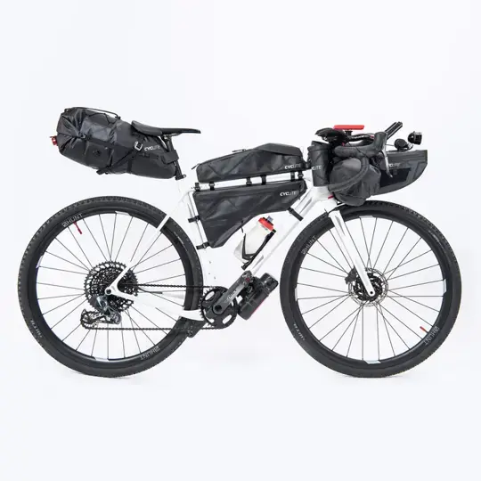 Tijdens het ontwerpproces is er rekening mee gehouden dat er, zelfs bij kleinere framematen, nog ruimte overblijft voor een drinkfles in de framedriehoek naast de Cyclite Frametas Large 3.6L. De tas is onderverdeeld in twee grote compartimenten, één boven en één onder, en heeft daarnaast een extra zijvak voor pasjes, identiteitsbewijs of contant geld. Binnenin bevinden zich twee gaasvakken voor kleine spullen en een sleutelhaak. Aan de voorzijde van de tas is een afgedekte opening voor het doorvoeren van stroomkabels of een drinkslang. Ondanks het grote volume en de vele functies is de Cyclite Frametas Large 3.6L extreem licht van gewicht, wat hem perfect maakt voor langere avonturen of ultra-distance races.
