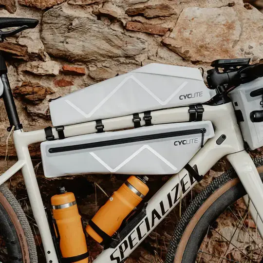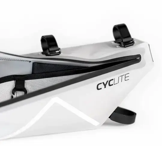 CompatibiliteitDe Cyclite Frametas XT 3.2L vereist een voldoende groot frame en voldoende ruimte onder de bovenbuis, die op sommige mountainbikes niet beschikbaar is door de aanwezigheid van een vering. Door de vorm van de tas kunnen drinkflessen over het algemeen nog wel in de fleshouder worden gebruikt.