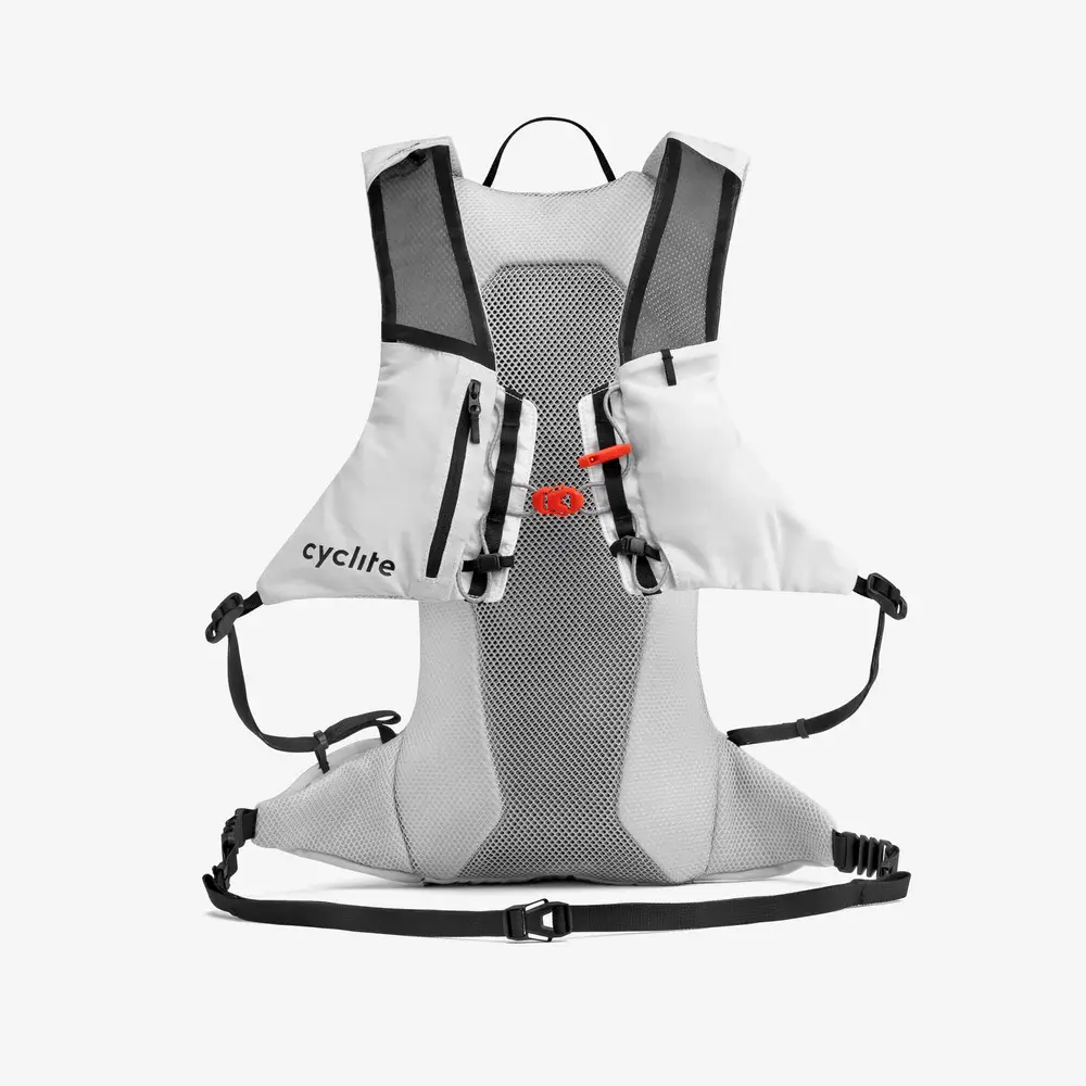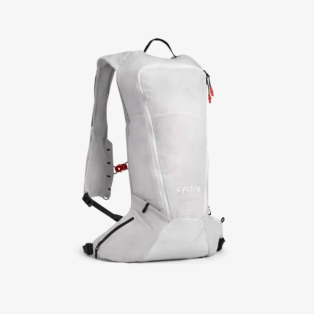 De Cyclite Race Rugzak 7.1L is de perfecte rugzak voor snelle tochten waarbij je alleen de essentiële spullen mee wilt nemen. Met zijn slanke, aerodynamische vorm en extreem lage gewicht is hij bijna niet voelbaar tijdens het fietsen. Het luchtige draagsysteem, geïnspireerd op trailrunning, biedt maximaal comfort, extra opbergmogelijkheden en een stabiele pasvorm, zelfs op ruw terrein.Het hoofdcompartiment van de rugzak heeft een aparte vak voor een hydratiebladder, een ritssluiting met sleutelhaak en vakken voor gereedschap en reserveonderdelen. Vier elastische buitenzakken, die ook tijdens het fietsen bereikbaar zijn, grote reflectoren, een achterlichtbevestiging en een regenhoes maken het functionele pakket compleet. De flexibele bumpers in de heupgordel zorgen voor een strakke pasvorm zonder beknellend gevoel.