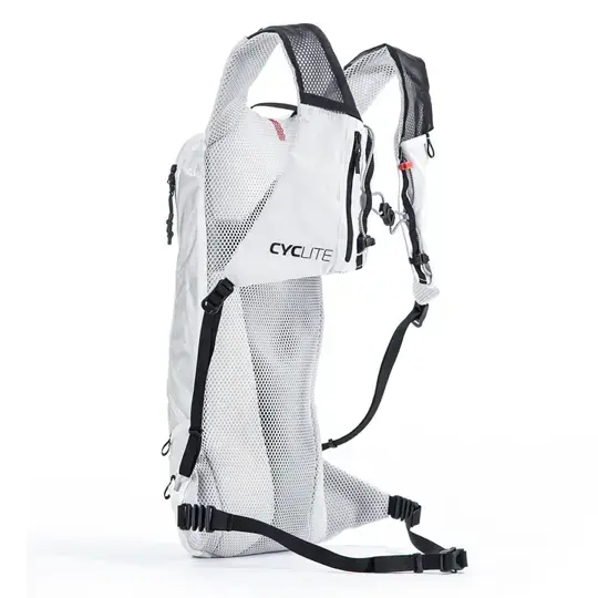De Cyclite Race Rugzak 7.1L is de ideale metgezel voor snelle tochten waarbij je alleen de essentiële spullen mee wilt nemen. Met zijn slanke, aerodynamische vorm en extreem laag gewicht is deze rugzak bijna niet voelbaar tijdens het fietsen. Het luchtdoorlatende draagsysteem, geïnspireerd op trailrunning, biedt maximaal comfort, extra opbergmogelijkheden en een stabiele pasvorm, zelfs op ruw terrein. Het hoofdcompartiment van de rugzak heeft een apart vak voor een drinkreservoir, een ritssluiting vak met sleutelhaak en opbergvakken voor gereedschap en reserveonderdelen. Vier elastische buitenzakken, die ook tijdens het fietsen bereikbaar zijn, grote reflectoren, een achterlichtbevestiging en een regenhoes maken het functionele pakket compleet. De flexibele heupkussens zorgen voor een strakke pasvorm zonder belemmerend te zijn.