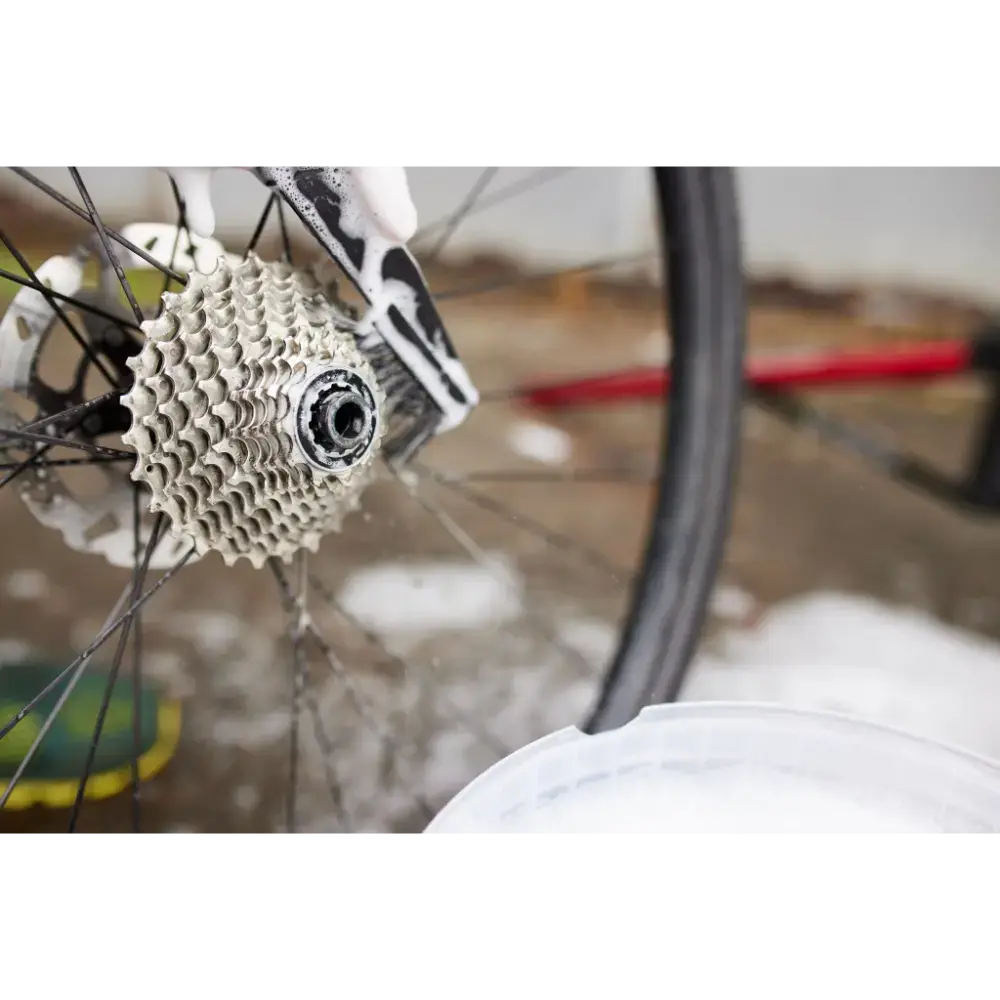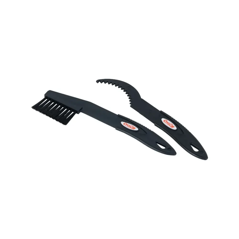 De Cyclon Cassetteschraper + Detail Schoonmaakborstel is een set bestaande uit twee borstels, speciaal ontwikkeld voor het reinigen van de aandrijflijn van je fiets. De Cassetteschraper is ideaal voor het grondig reinigen van je cassette, terwijl de Detail Schoonmaakborstel perfect is voor het verwijderen van vuil van de ketting, derailleur en keteningwielen. Met deze set kun je alle moeilijk bereikbare onderdelen van je aandrijflijn eenvoudig en effectief schoonmaken.