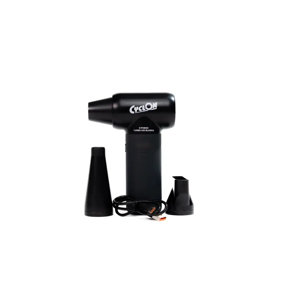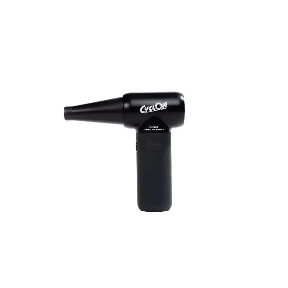 De CyclOn E-Power Turbo Air Blower is een krachtige en efficiënte elektrische blazer, speciaal ontworpen om je fiets snel en veilig te drogen na het wassen of een rit in natte omstandigheden. Dankzij de gerichte luchtstroom verwijder je eenvoudig water, vuil en vocht van moeilijk bereikbare onderdelen zoals derailleurs, de cassette en lagers. Dit helpt roest te voorkomen en verlengt de levensduur van je componenten, terwijl je fiets in een mum van tijd schoon en droog is. Het lichte en compacte ontwerp zorgt voor comfortabel gebruik, zowel in de werkplaats als thuis.