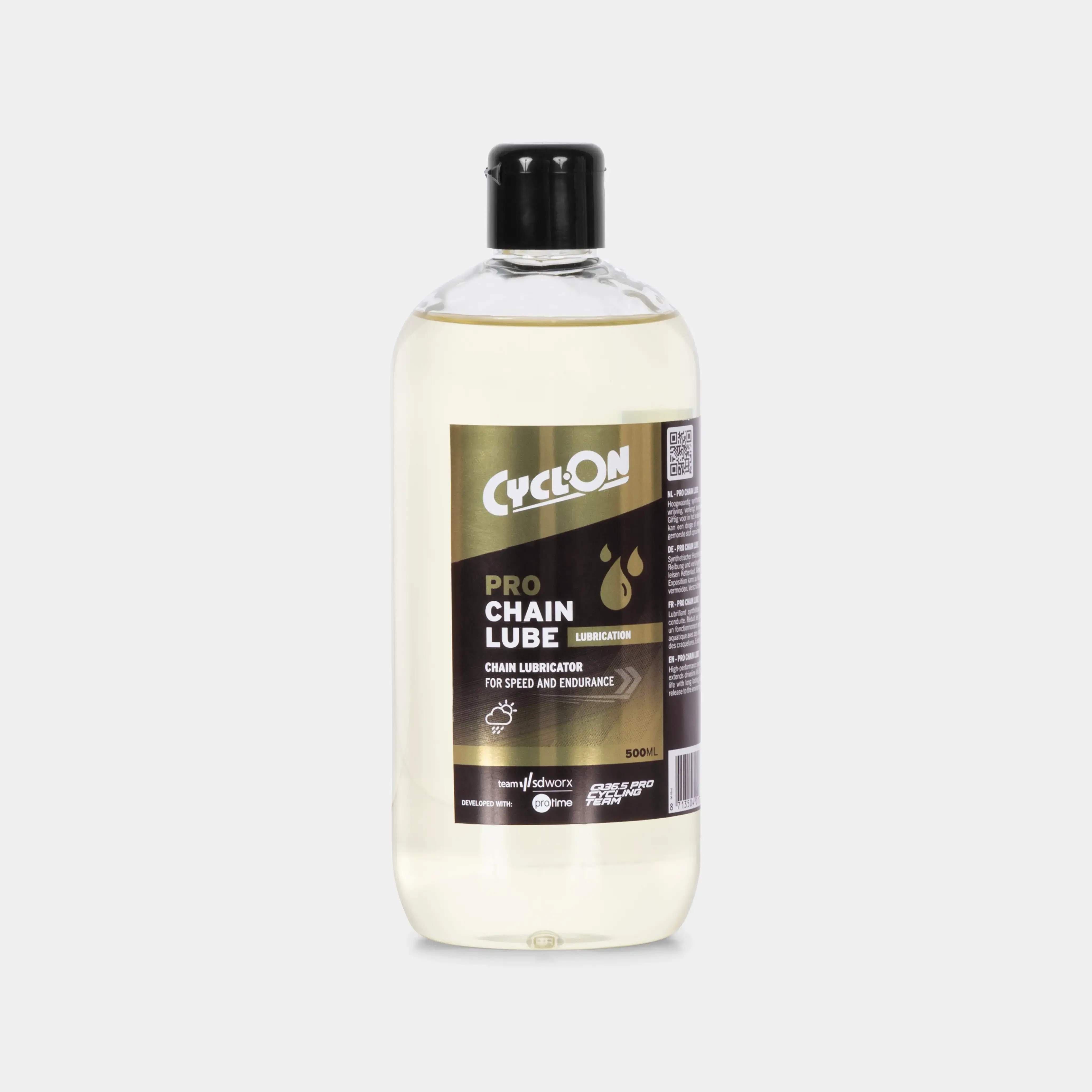 CyclOn Pro Chain Lube 500ml is de grotere werkplaatsverpakking van het hoogwaardige, synthetische kettingsmeermiddel dat ontwikkeld en getest is in samenwerking met Team SD Worx-Protime en Q36.5 Pro Cycling. Deze halve-literfles is ideaal voor grootverbruik of professioneel gebruik in de werkplaats. De geavanceerde formule biedt topprestaties onder alle weersomstandigheden, dringt diep door in de schakels en zorgt voor minimale wrijving en slijtage. Zo blijft de aandrijflijn langer in topconditie en geniet je van een soepele, stille kettingloop, net als de profs.