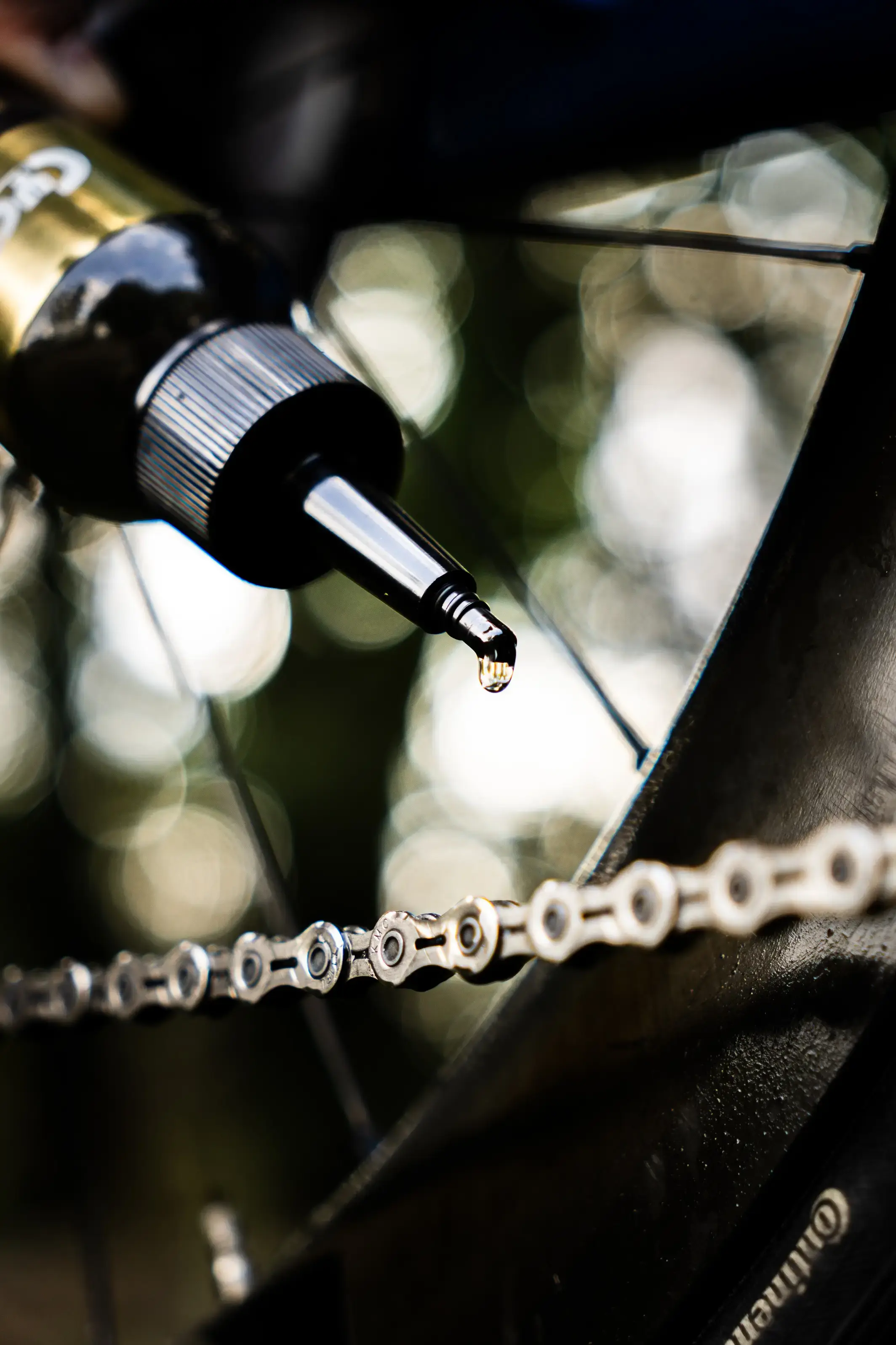 - Reinig en ontvet de ketting met CyclOn Pro Chain Stripper en laat volledig drogen