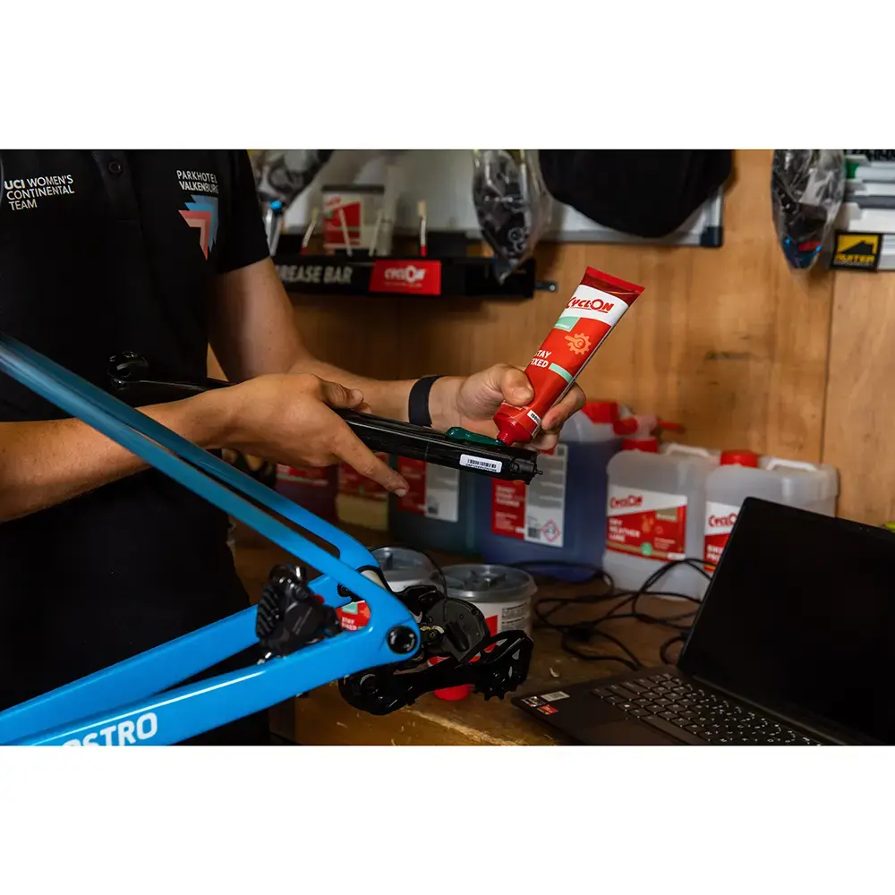 De Cyclon Stay Fixed Carbon montage pasta is gemaakt om alle niet bewegende, delen af te monteren. Denk aan carbon en aluminium zadelpennen, voorbouwen en stuurpennen. Het middel heeft een zeer goede hechtkracht en voorkomt dat de onderdelen op elkaar gaan inwerken. Stay Fixed tast het oppervlak van carbon onderdelen niet aan. Het maakt montage en demontage gemakkelijk.