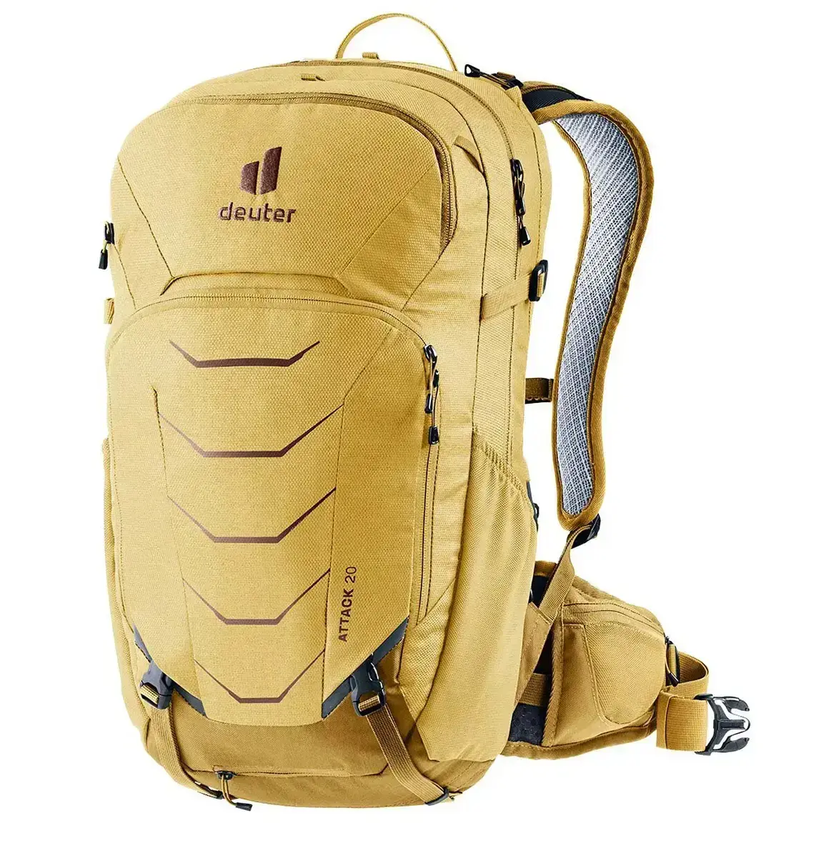 De deuter Attack 20 Fietsrugzak is een compacte en comfortabele rugzak die ontworpen is voor het mountainbiken. Dankzij de uitstekende ventilatie op het rugpand, en de ontelbare opbergmogelijkheden kan je op een comfortabele manier al je essentials meenemen. Het slanke design laat de rugzak compact en stabiel aanvoelen. Naast het zeer goed ademende rugpand, zijn ook de schouderriemen met Mesh gevoerd, voor een nog beter ademend vermogen. Daarnaast bieden ze voldoende bewegingsvrijheid. De tas is voorzien van een uitneembare rugbeschermer welke gemaakt is van speciaal Memory Foam, welke na een impact terugkomt in de originele vorm. Hierdoor blijft deze protector ook effectief na meerdere crashes. Het rugpand is tevens voorzien van het Contact rugsysteem, wat zorgt voor optimale verdeling van de druk van de rugzak verdeeld wordt. Je helm kan je gemakkelijk aan de voorzijde van de tas bevestigen, zodat deze geen ruimte inneemt in de tas. Met de slijtvaste Carrying Guard kan je je fiets op de rugtas dragen wanneer je een stuk moet lopen. De DWR coating voorziet de tas van een waterafstotende laag, zodat vocht niet naar binnen dringt. De tas is vrij van polyfluorchemicaliën, waardoor er minder milieubelastende stoffen gebruikt zijn bij het produceren van deze tas. De reflecterende elementen zorgen ervoor dat je ook in donkere omstandigheden goed zichtbaar bent, en daarnaast kan je aan de lus op de voorzijde een achterlicht bevestigen.