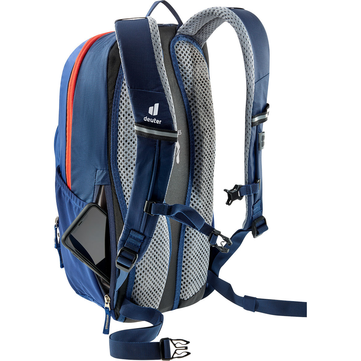 De deuter Bike I 14 Fietsrugzak is een extreem comfortabele rugzak. Dankzij de uitstekende ventilatie op het rugpand, en de ontelbare opbergmogelijkheden kan je op een comfortabele manier al je essentials meenemen. Het slanke design laat de rugzak compact en stabiel aanvoelen. Naast het zeer goed ademende rugpand, zijn ook de schouderriemen met Mesh gevoerd, voor een nog beter ademend vermogen. Daarnaast bieden ze voldoende bewegingsvrijheid. Je helm kan je gemakkelijk aan de voorzijde van de tas bevestigen, zodat deze geen ruimte inneemt in de tas. De DWR coating voorziet de tas van een waterafstotende laag, zodat vocht niet naar binnen dringt. De tas is vrij van polyfluorchemicaliën, waardoor er minder milieubelastende stoffen gebruikt zijn bij het produceren van deze tas.