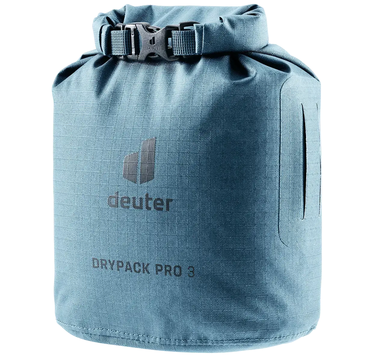 De Deuter Drypack Pro 3 liter biedt betrouwbare bescherming tegen vocht en vuil dankzij het waterdichte materiaal en de getapete en gelaste naden. Ideaal voor outdooractiviteiten waarbij spullen droog en veilig moeten blijven. De rolsluiting zorgt voor een waterdichte afdichting, mits de opening minimaal drie keer wordt opgerold voordat de gesp wordt gesloten. Deze drypack is voorzien van een stevige D-ring, waarmee de tas eenvoudig kan worden opgehangen, en bevestigingslussen aan de zijkanten voor extra zekerheid bij het vastmaken aan een rugzak of andere uitrusting. Het compacte formaat maakt deze tas perfect voor het opbergen van waardevolle spullen of kleine accessoires tijdens avontuurlijke tochten.