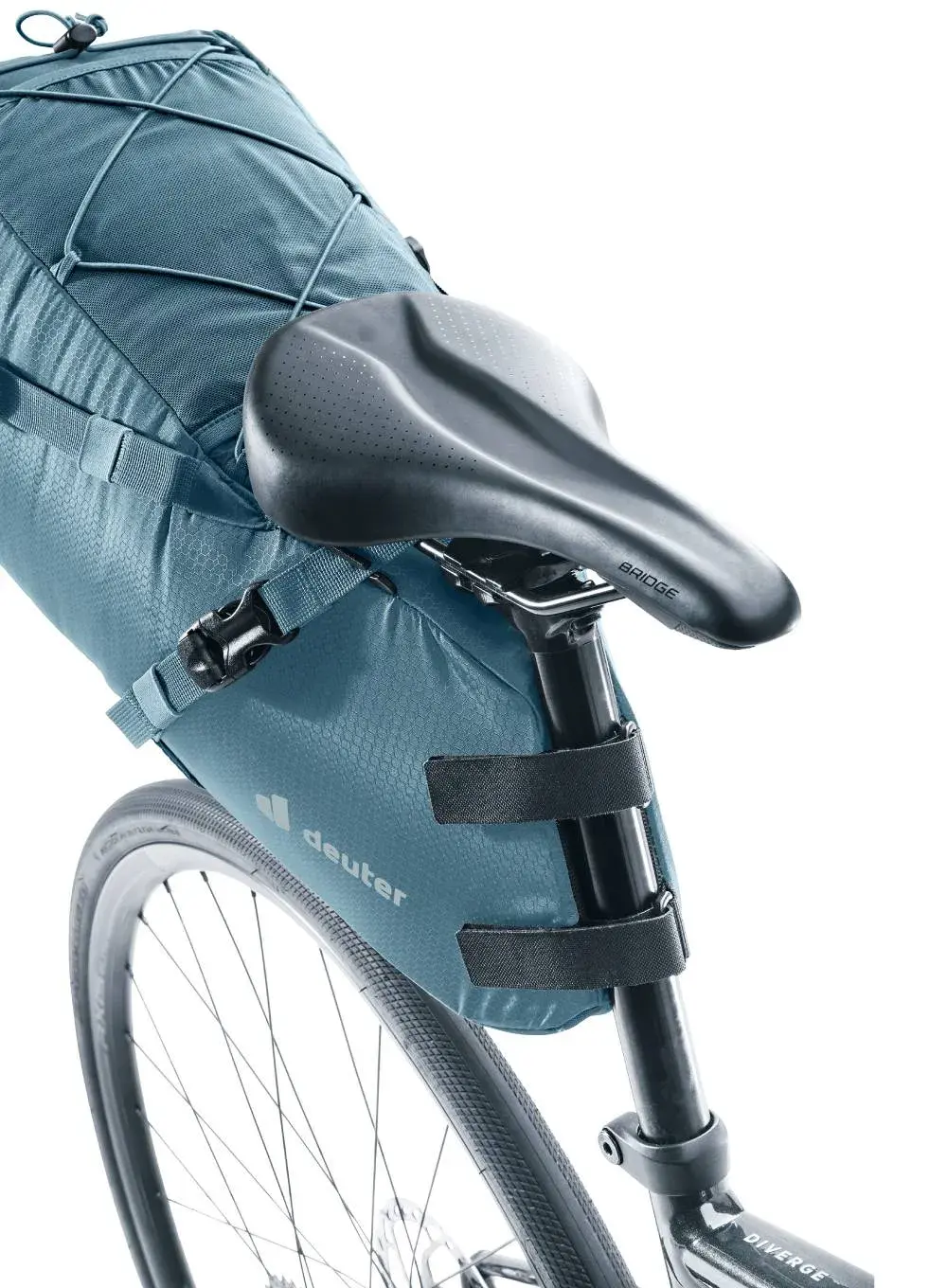 De Mondego is eenvoudig vast te maken met twee klittenband straps om de zadelpen en twee verstelbare koorden met gesp aan de zadelrails. Bovenop het harnas is elastiek aangebracht, waaronder je eenvoudig een regenjasje of extra schoenen vast kunt zetten. Enkele reflecterende details zorgen voor een beetje extra zichtbaarheid.