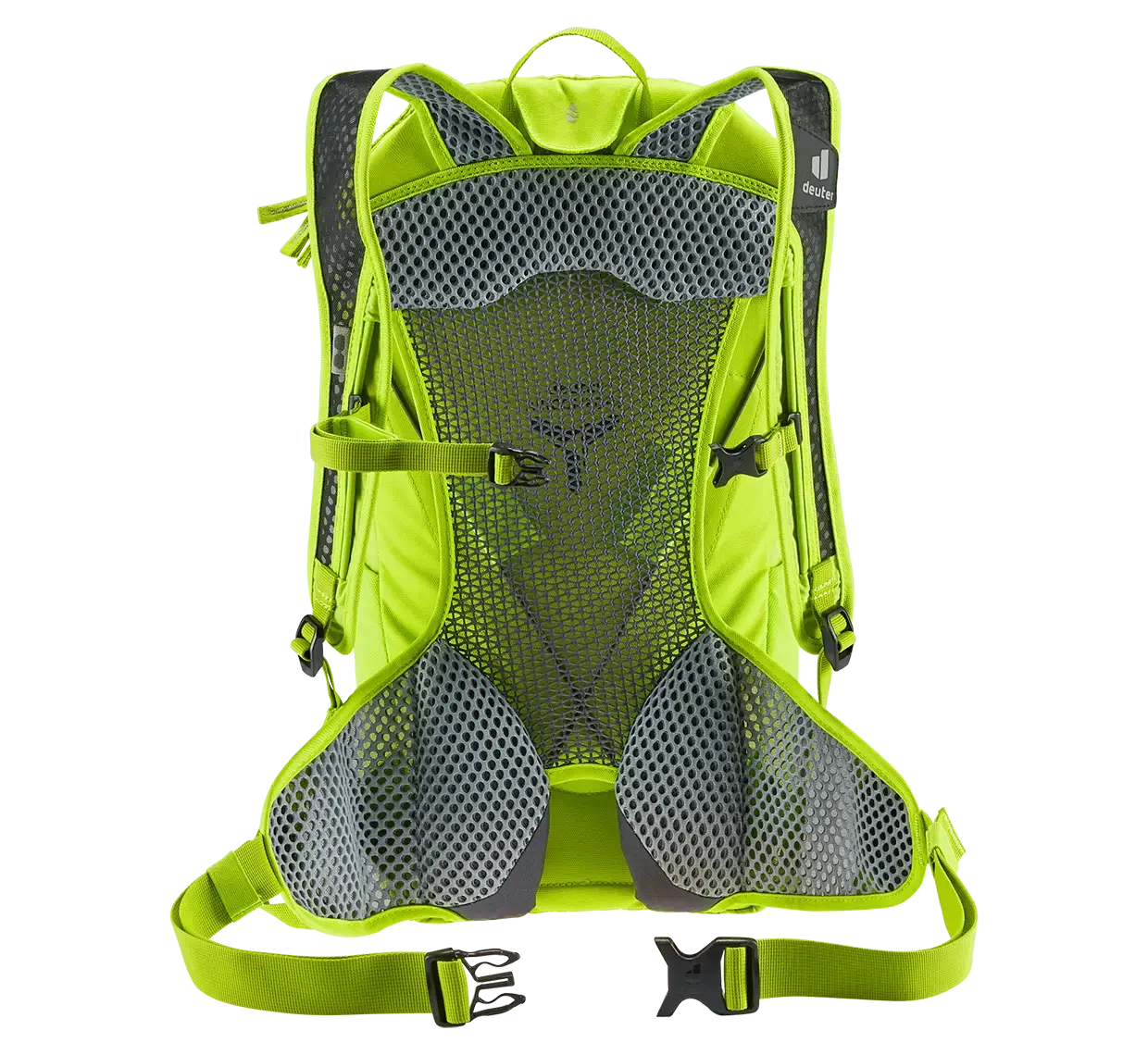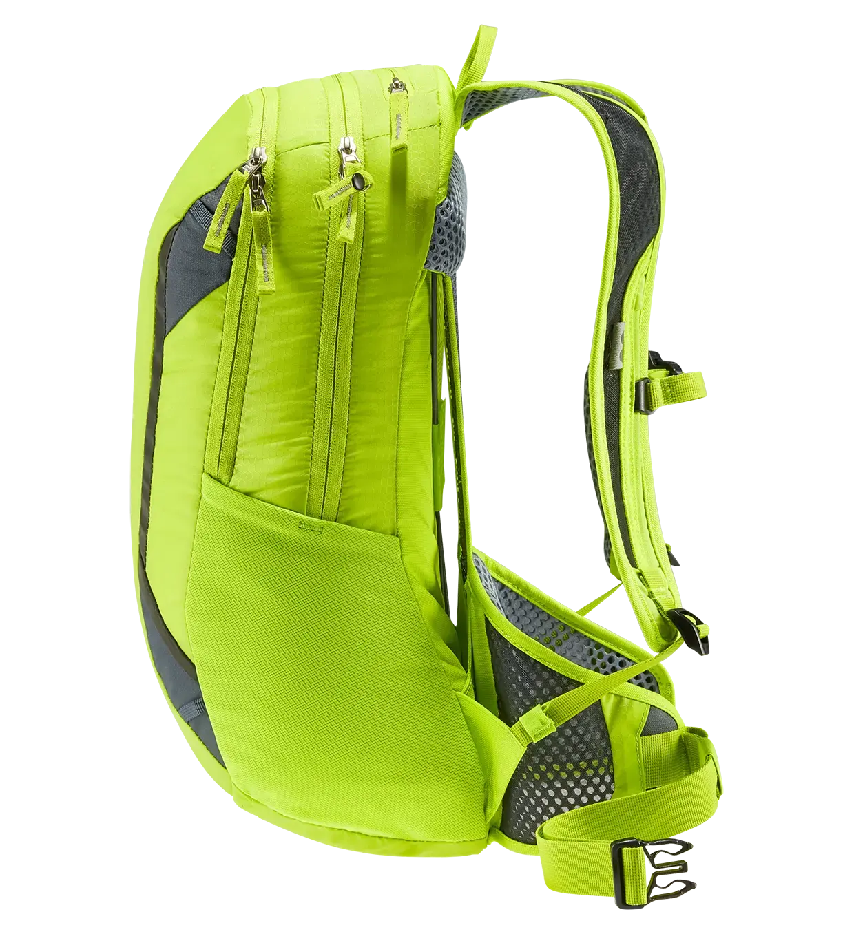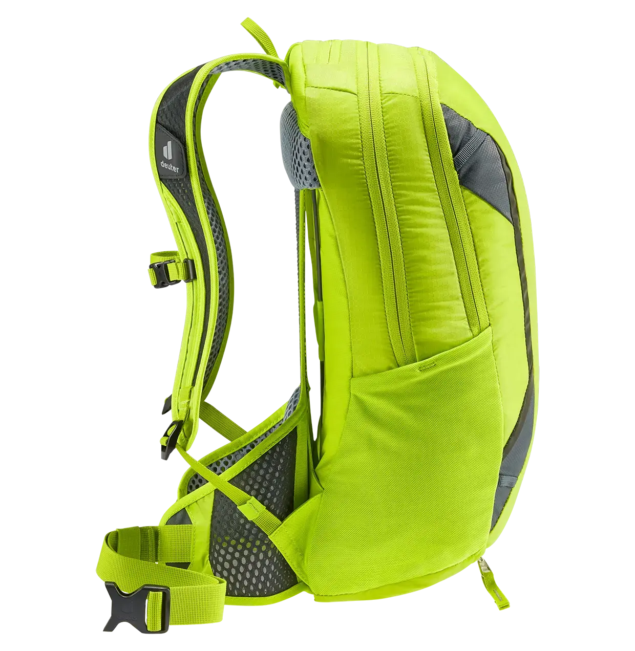 De deuter Race Air Fietsrugzak is een extreem comfortabele rugzak. Dankzij de uitstekende ventilatie op het rugpand, en de vele opbergmogelijkheden kan je op een comfortabele manier je belangrijkste essentials meenemen. Het slanke design laat de rugzak compact en stabiel aanvoelen. Het rugpand is voorzien van het Aircomfort systeem, wat zorgt voor optimale ventilatie dankzij voldoende ventilatieruimte tussen het veerstalen frame en de rug. Daarnaast zijn de schouderriemen met Mesh gevoerd, voor een nog beter ademend vermogen. Daarnaast bieden ze voldoende bewegingsvrijheid. Je helm kan je gemakkelijk aan de voorzijde van de tas bevestigen, zodat deze geen ruimte inneemt in de tas. De DWR coating voorziet de tas van een waterafstotende laag, zodat vocht niet naar binnen dringt. De tas en coating zijn vrij van polyfluorchemicaliën, waardoor er minder milieubelastende stoffen gebruikt zijn bij het produceren van deze tas. De reflecterende elementen zorgen ervoor dat je ook in donkere omstandigheden goed zichtbaar bent.