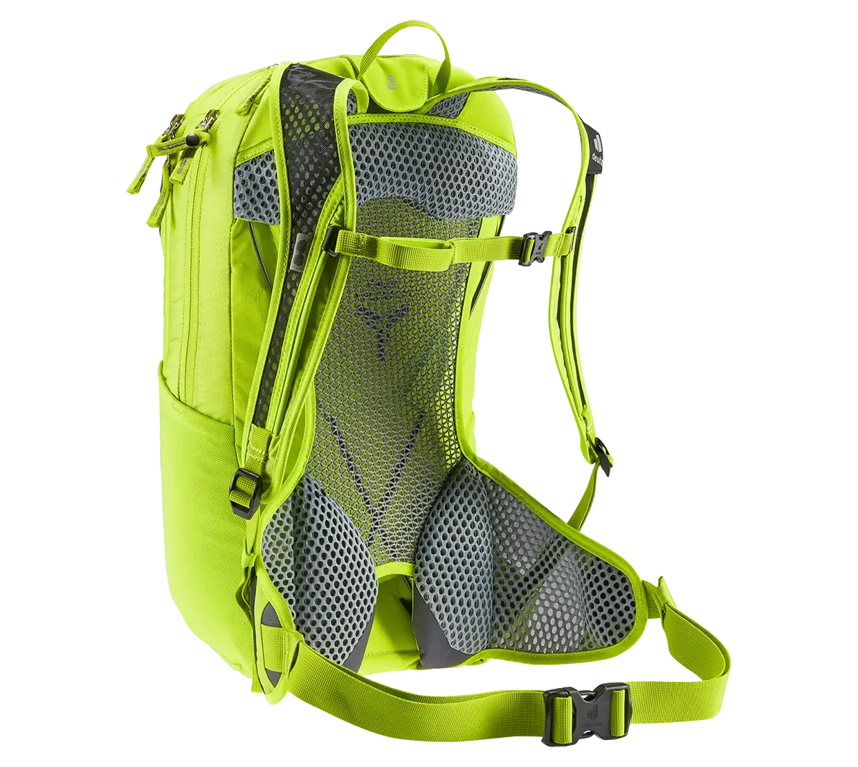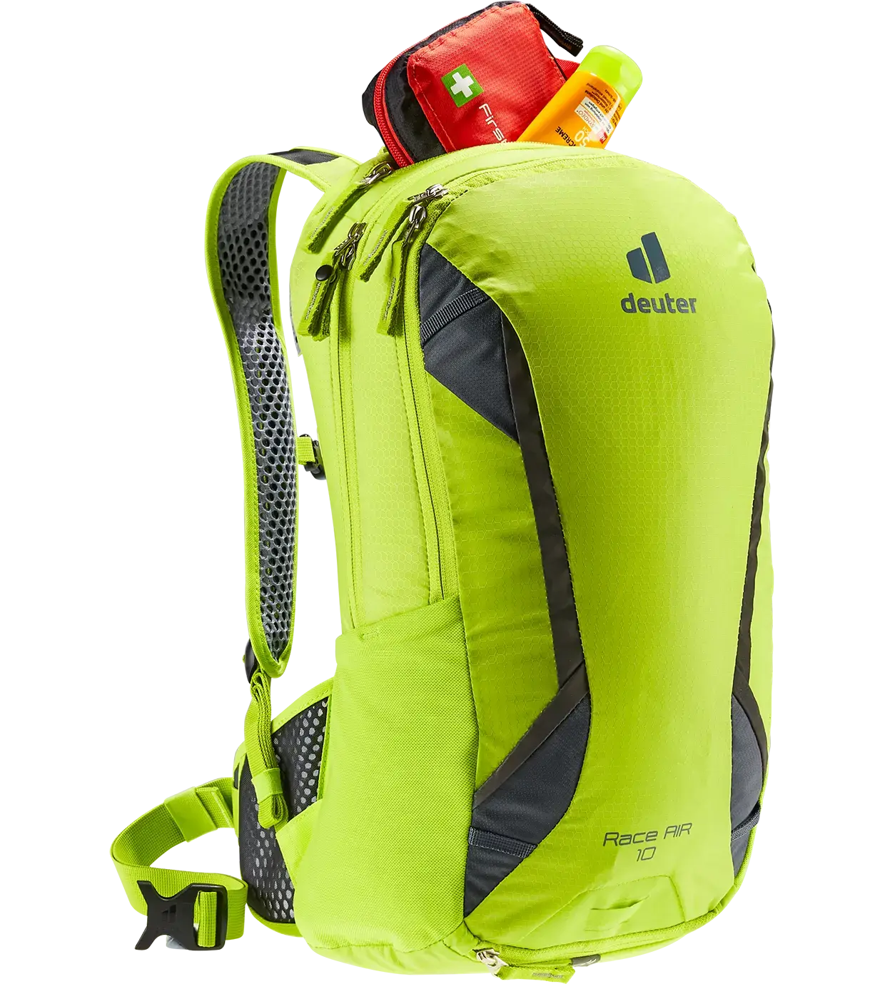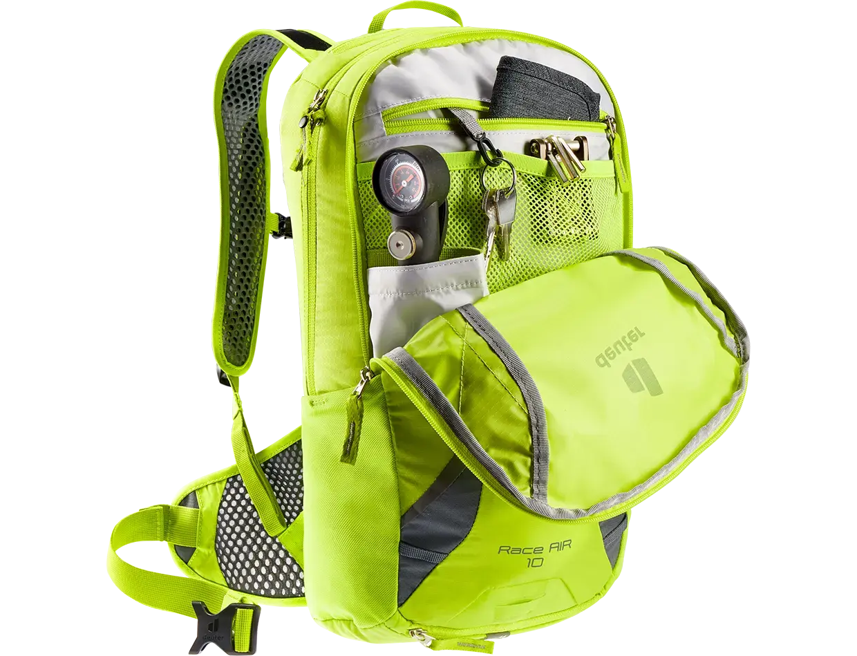 De deuter Race Air Fietsrugzak is een extreem comfortabele rugzak. Dankzij de uitstekende ventilatie op het rugpand, en de vele opbergmogelijkheden kan je op een comfortabele manier je belangrijkste essentials meenemen. Het slanke design laat de rugzak compact en stabiel aanvoelen. Het rugpand is voorzien van het Aircomfort systeem, wat zorgt voor optimale ventilatie dankzij voldoende ventilatieruimte tussen het veerstalen frame en de rug. Daarnaast zijn de schouderriemen met Mesh gevoerd, voor een nog beter ademend vermogen. Daarnaast bieden ze voldoende bewegingsvrijheid. Je helm kan je gemakkelijk aan de voorzijde van de tas bevestigen, zodat deze geen ruimte inneemt in de tas. De DWR coating voorziet de tas van een waterafstotende laag, zodat vocht niet naar binnen dringt. De tas en coating zijn vrij van polyfluorchemicaliën, waardoor er minder milieubelastende stoffen gebruikt zijn bij het produceren van deze tas. De reflecterende elementen zorgen ervoor dat je ook in donkere omstandigheden goed zichtbaar bent.