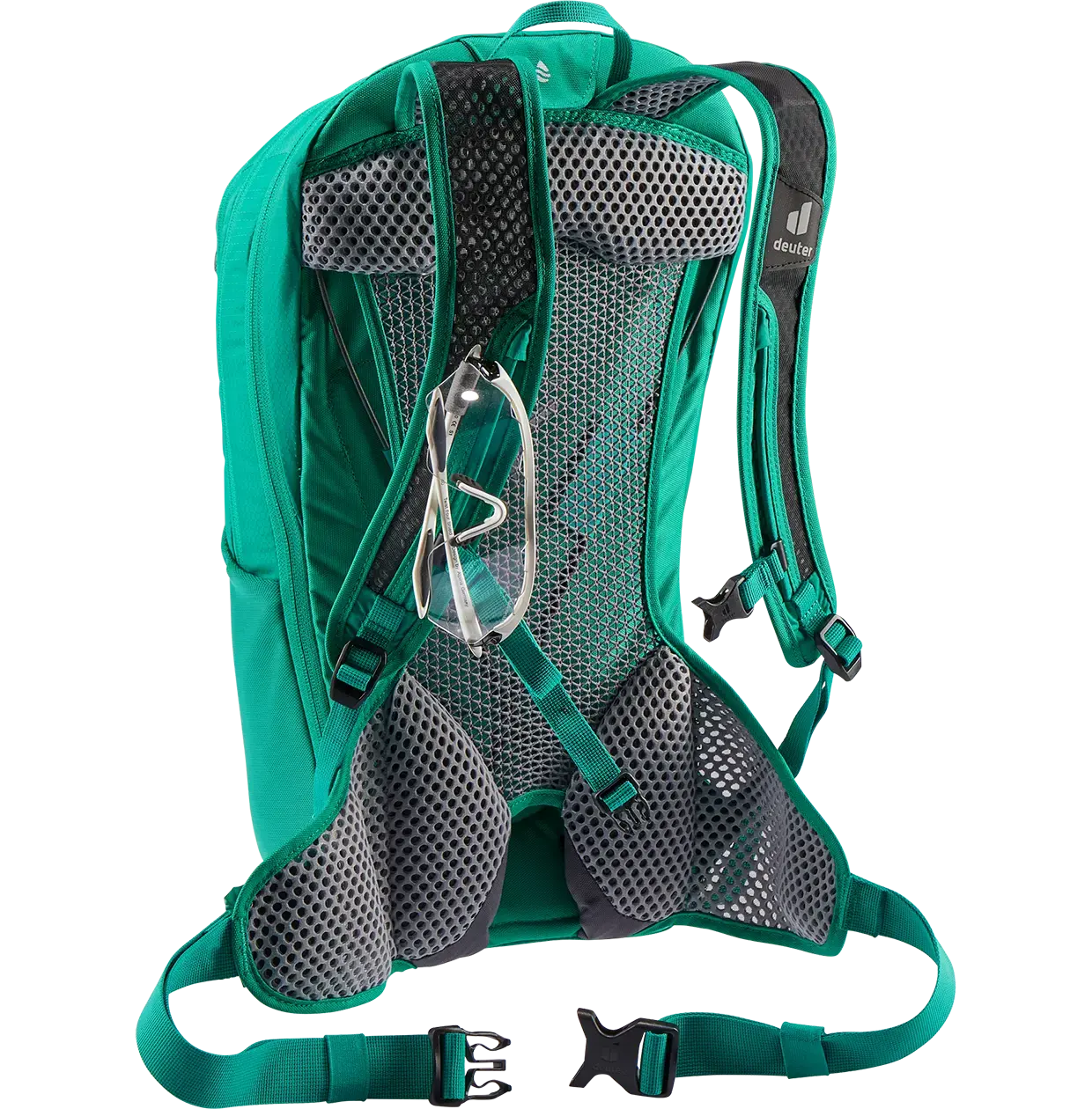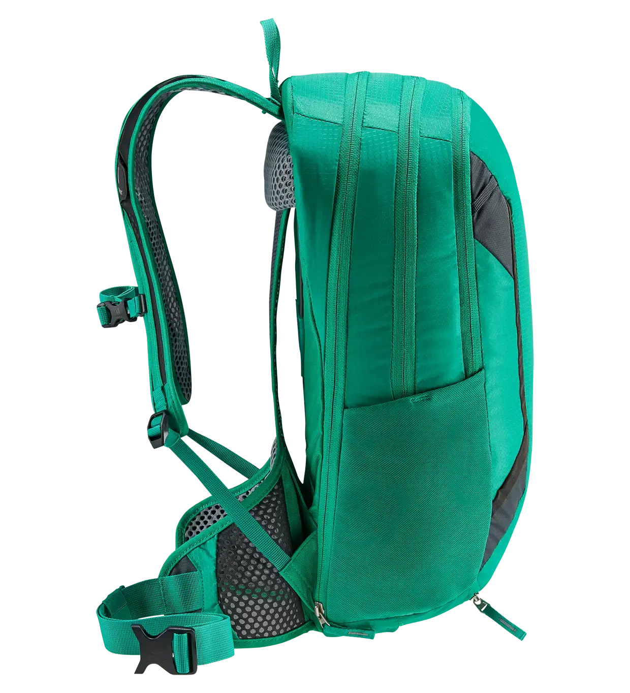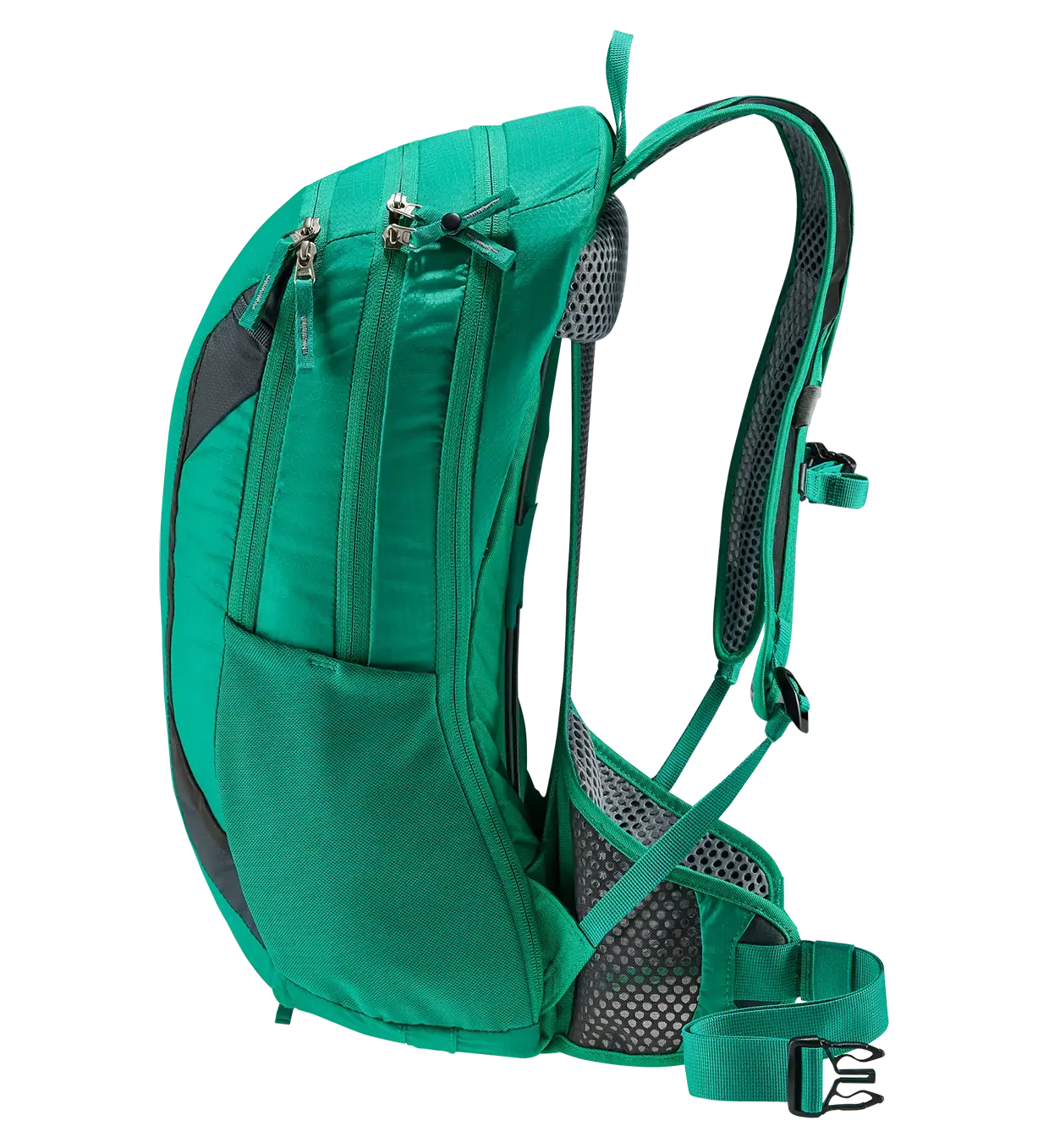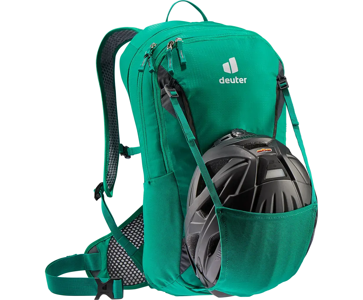 De deuter Race EXP Air Fietsrugzak is een extreem comfortabele rugzak. Dankzij de uitstekende ventilatie op het rugpand, en de vele opbergmogelijkheden kan je op een comfortabele manier je belangrijkste essentials meenemen. Het slanke design laat de rugzak compact en stabiel aanvoelen. Het rugpand is voorzien van het Aircomfort systeem, wat zorgt voor optimale ventilatie dankzij voldoende ventilatieruimte tussen het veerstalen frame en de rug. Daarnaast zijn de schouderriemen met Mesh gevoerd, voor een nog beter ademend vermogen. Daarnaast bieden ze voldoende bewegingsvrijheid. Je helm kan je gemakkelijk aan de voorzijde van de tas bevestigen, zodat deze geen ruimte inneemt in de tas. Wanneer je toch meer ruimte nodig hebt, is het volume van de tas in een oogwenk uit te breiden. De DWR coating voorziet de tas van een waterafstotende laag, zodat vocht niet naar binnen dringt. De tas en coating zijn vrij van polyfluorchemicaliën, waardoor er minder milieubelastende stoffen gebruikt zijn bij het produceren van deze tas. De reflecterende elementen zorgen ervoor dat je ook in donkere omstandigheden goed zichtbaar bent.