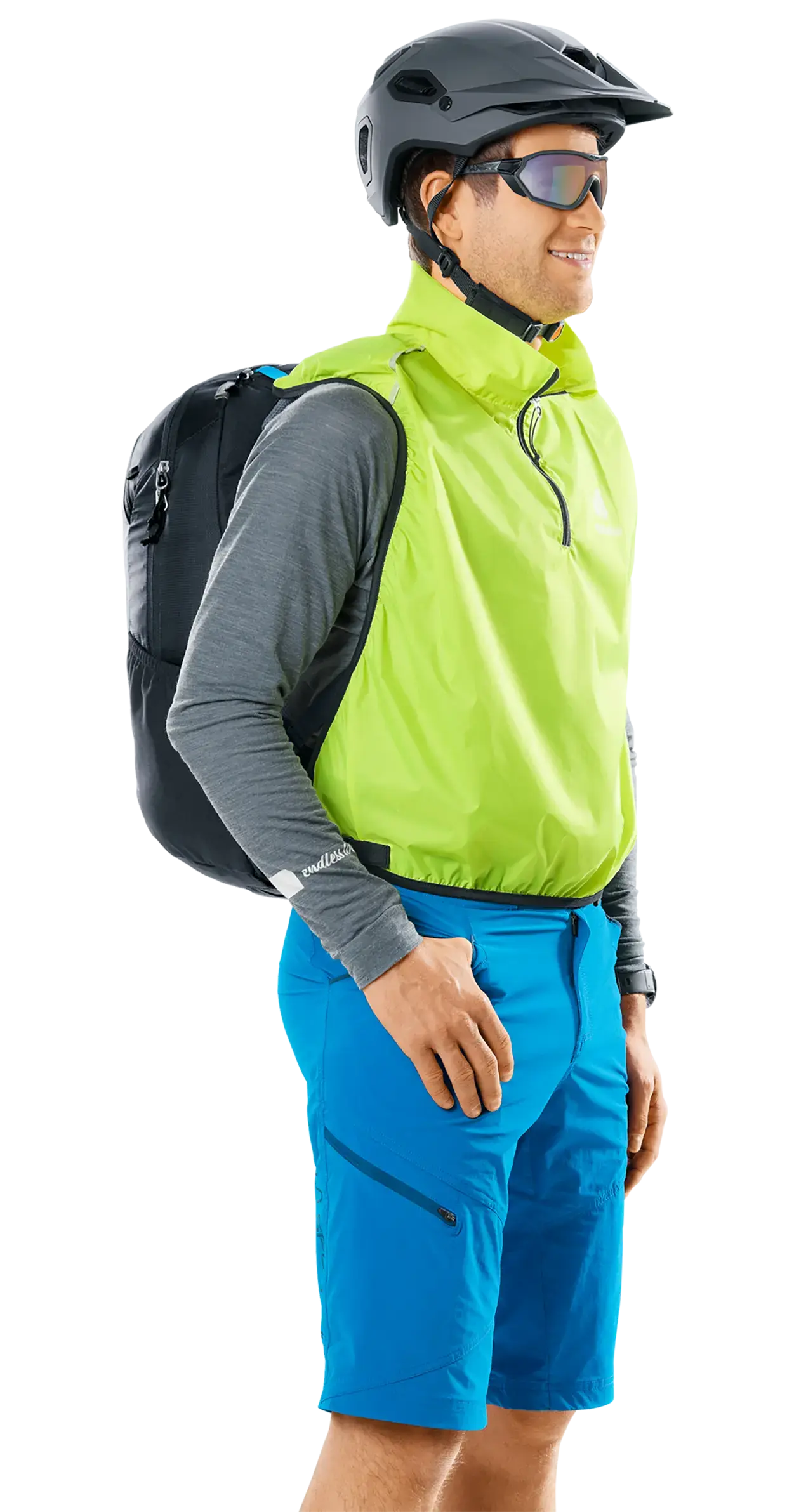 - Windshield: ademende windbescherming op het deksel van de rugzak