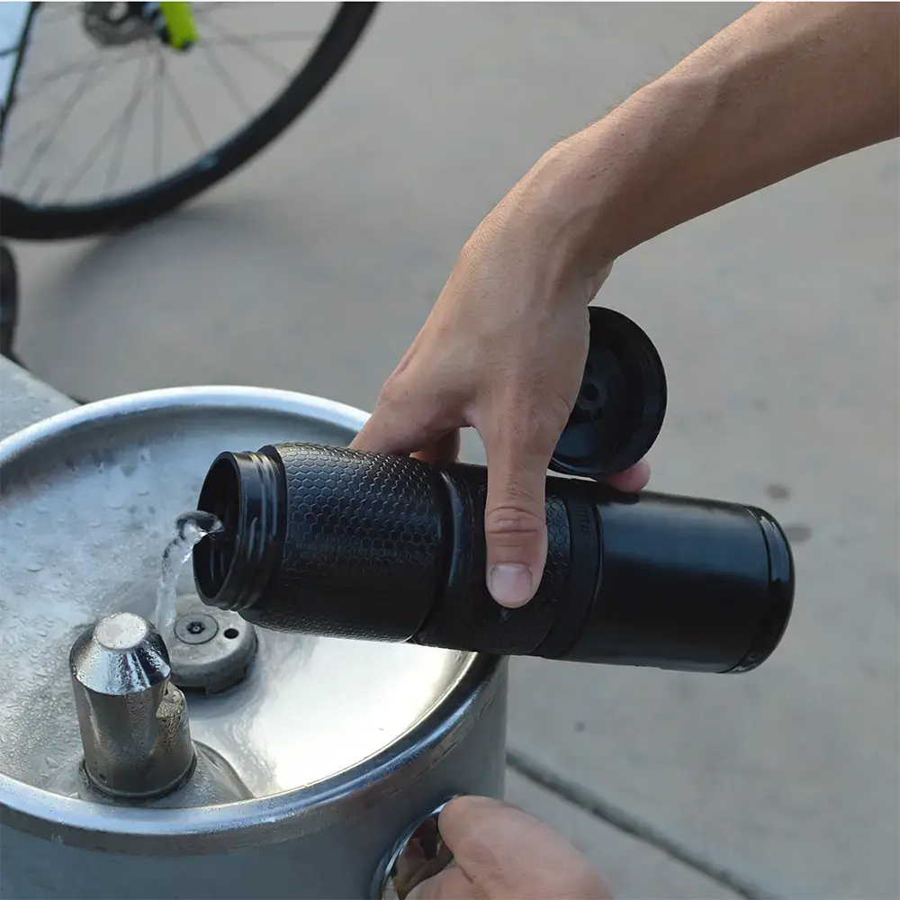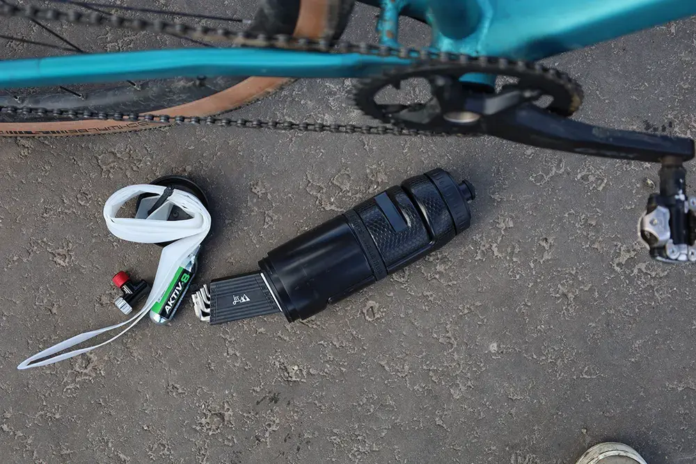 Deze gereedschapsbidon stelt je in staat om reservemateriaal mee te nemen op je fietstocht, zonder in te leveren op je hydratatie. Hij bestaat namelijk uit twee compartimenten, een voor je gereedschap, en met een waterreservoir. Deze bidon past in elke bidonhouder.