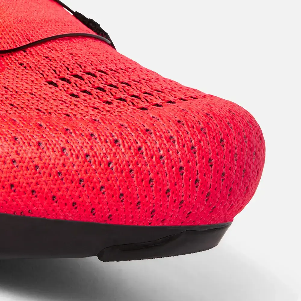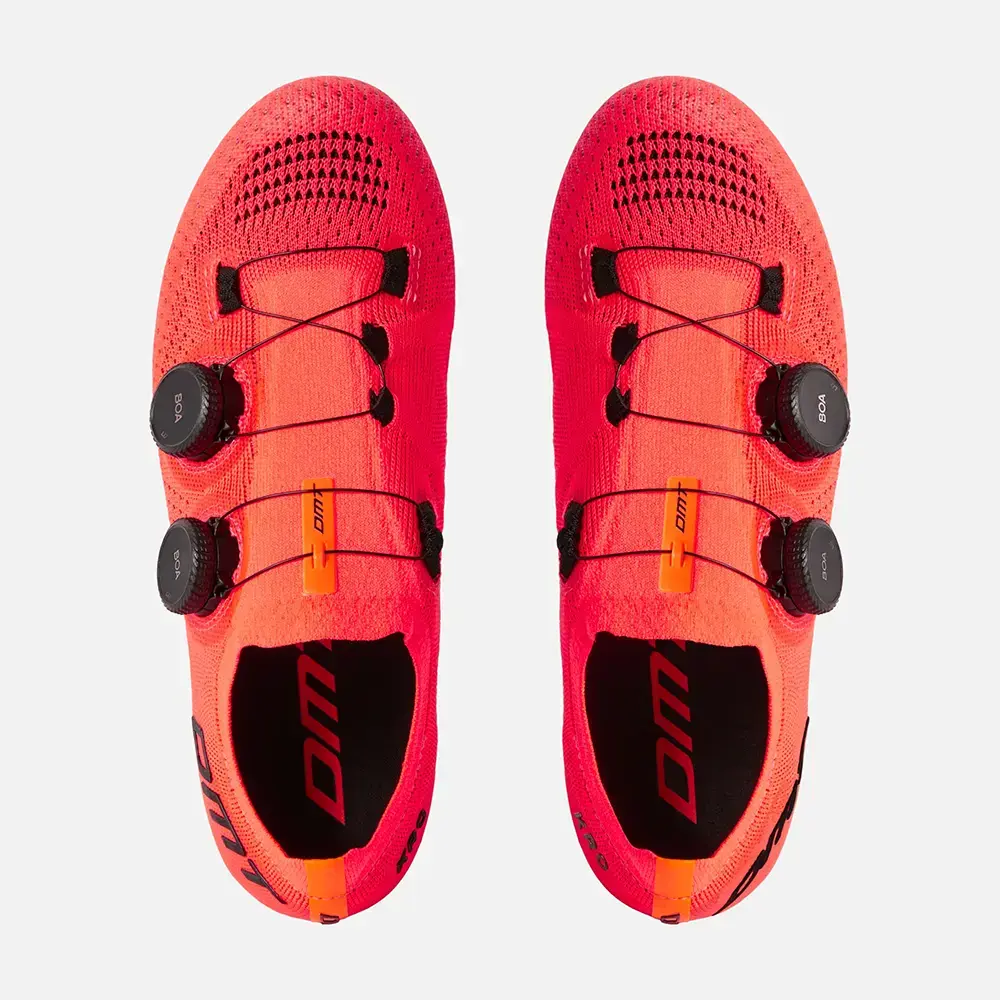 Deze DMT KR0 wielrenschoen is de absolute topschoen uit het assortiment van DMT. Deze hoogwaardige raceschoen doet geen concessies aan pasvorm of comfort. Het uit één stuk vervaardigde en naadloze gebreide bovenwerk zorgt voor een uitstekende ventilatie bij zware inspanning. De schoen heeft een BOA® Fit-systeem met een dubbele Li2-draaiknop, zodat de schoen perfect om jouw voet heen past. De zool is gemaakt van een extreem lichtgewicht en stijf carbon. Dit maakt de schoenen uiteraard zeer licht, maar maakt ook de krachtoverbrenging naar de pedalen extreem goed. Voor een perfecte pasvorm en ongekende prestaties zijn deze schoenen ontwikkeld in samenwerking met Elia Viviani.