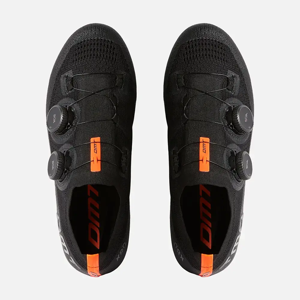 Deze DMT KR0 wielrenschoen is de absolute topschoen uit het assortiment van DMT. Deze hoogwaardige raceschoen doet geen concessies aan pasvorm of comfort. Het uit één stuk vervaardigde en naadloze gebreide bovenwerk zorgt voor een uitstekende ventilatie bij zware inspanning. De schoen heeft een BOA® Fit-systeem met een dubbele Li2-draaiknop, zodat de schoen perfect om jouw voet heen past. De zool is gemaakt van een extreem lichtgewicht en stijf carbon. Dit maakt de schoenen uiteraard zeer licht, maar maakt ook de krachtoverbrenging naar de pedalen extreem goed. Voor een perfecte pasvorm en ongekende prestaties zijn deze schoenen ontwikkeld in samenwerking met Elia Viviani.
