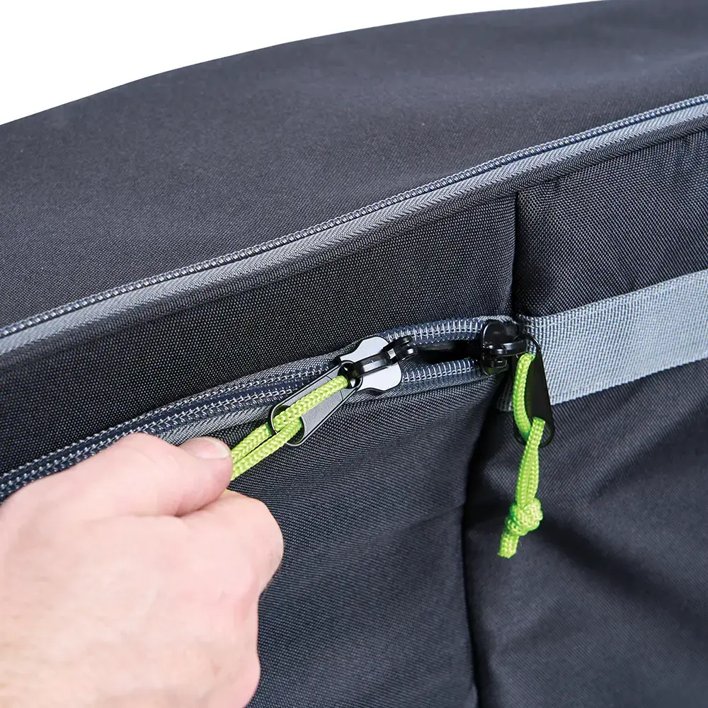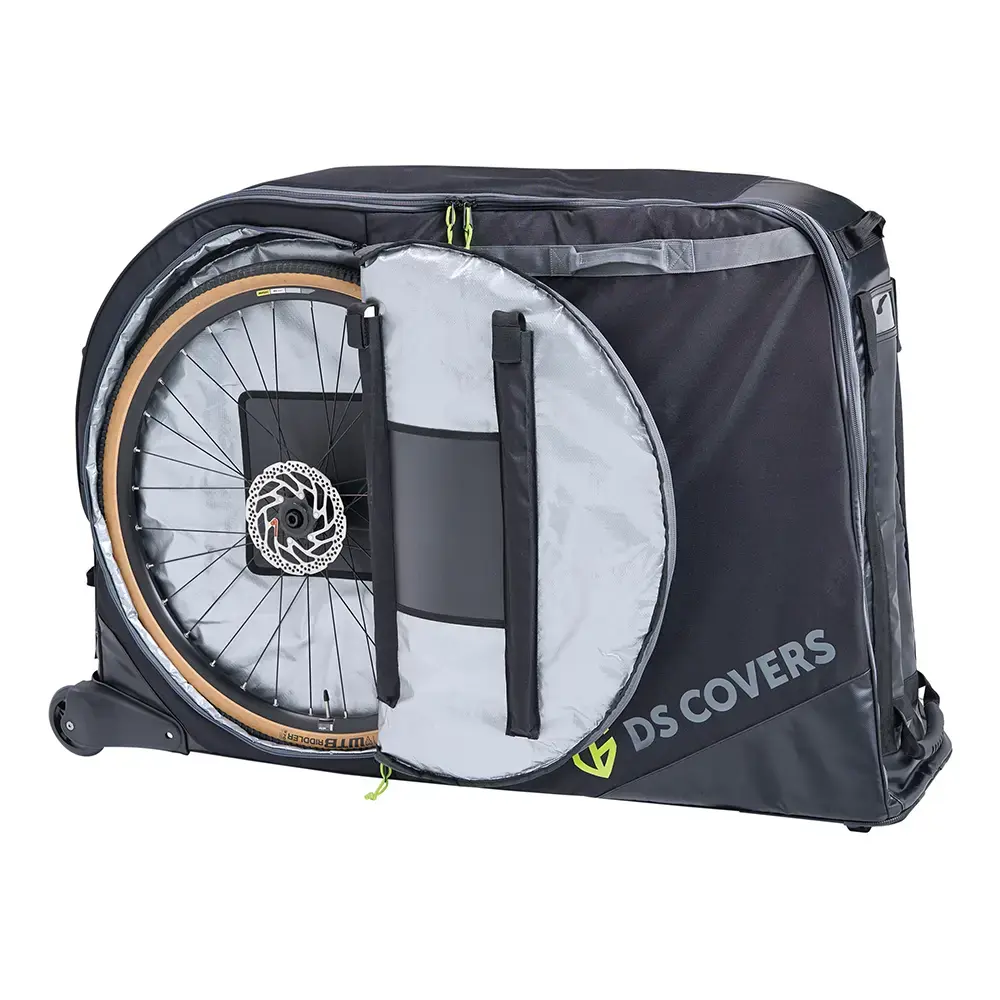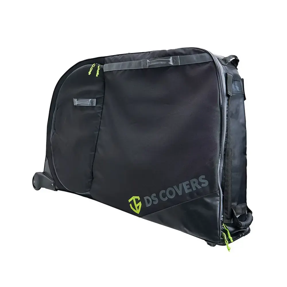 De DS Covers ARROW Fietstransporttas is een hoogwaardige tas om je fiets in te vervoeren. Hij is geschikt voor de meeste fietsen tot 29”. Racefietsen, mountainbikes, gravelbikes, triathlonfietsen. Alles past erin! De tas wordt geleverd inclusief flexibele buizen en stokken om de tas in vorm te krijgen en te houden. Daarnaast wordt er een bike block meegeleverd waar de achtervork op rust, maar ook een hoes voor de aandrijflijn en een framepas. Kortom alles zodat je je fiets netjes en degelijk kan opbergen in de tas. De tas beschikt over afzonderlijke vakken voor je wielen, die beschikken over schijfrem-, cassette en wielassenbeschermers. Ook is er een apart vak voor je snelspanners of steekassen. De tas is voorzien van twee wieltjes, zodat je hem gemakkelijk kan vervoeren. Bovendien kan je de tas klein opvouwen op het moment dat je hem niet gebruikt, zo neemt hij niet veel ruimte in beslag!
