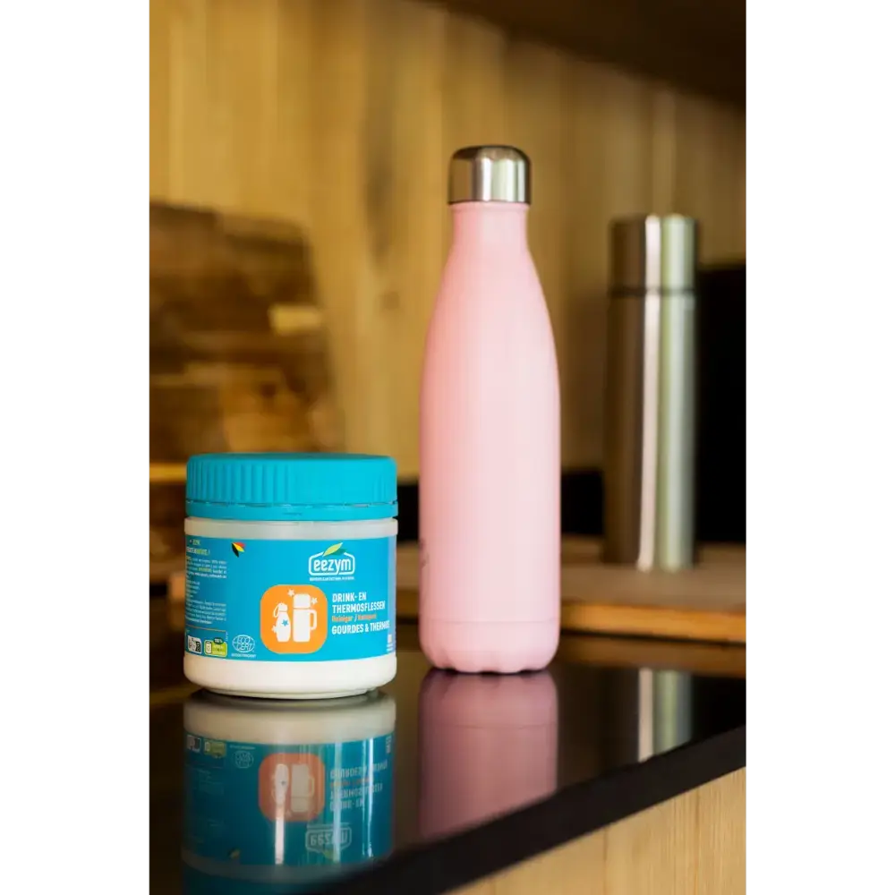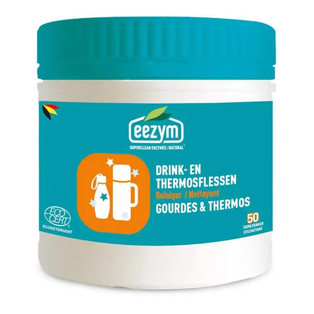 De Eezym Reiniger voor Bidons en Thermosflessen is speciaal ontwikkeld om hardnekkige vlekken, nare geurtjes en bacteriën effectief te verwijderen uit jouw drinkflessen en thermos-bekers. Dankzij de krachtige formule op basis van natuurlijke ingrediënten wordt de oorspron-kelijke glans van je flessen hersteld en voorkom je de vorming van slijmerige resten en bacteri-ennesten. Deze reiniger is geschikt voor zowel plastic als roestvrijstalen flessen en thermos-kannen, en kan bovendien gebruikt worden voor het reinigen van keukenmachines en RVS-oppervlakken zoals pannen en gootstenen. Een ideale oplossing voor sporters en outdoorlief-hebbers die hun bidons grondig en hygiënisch willen reinigen.