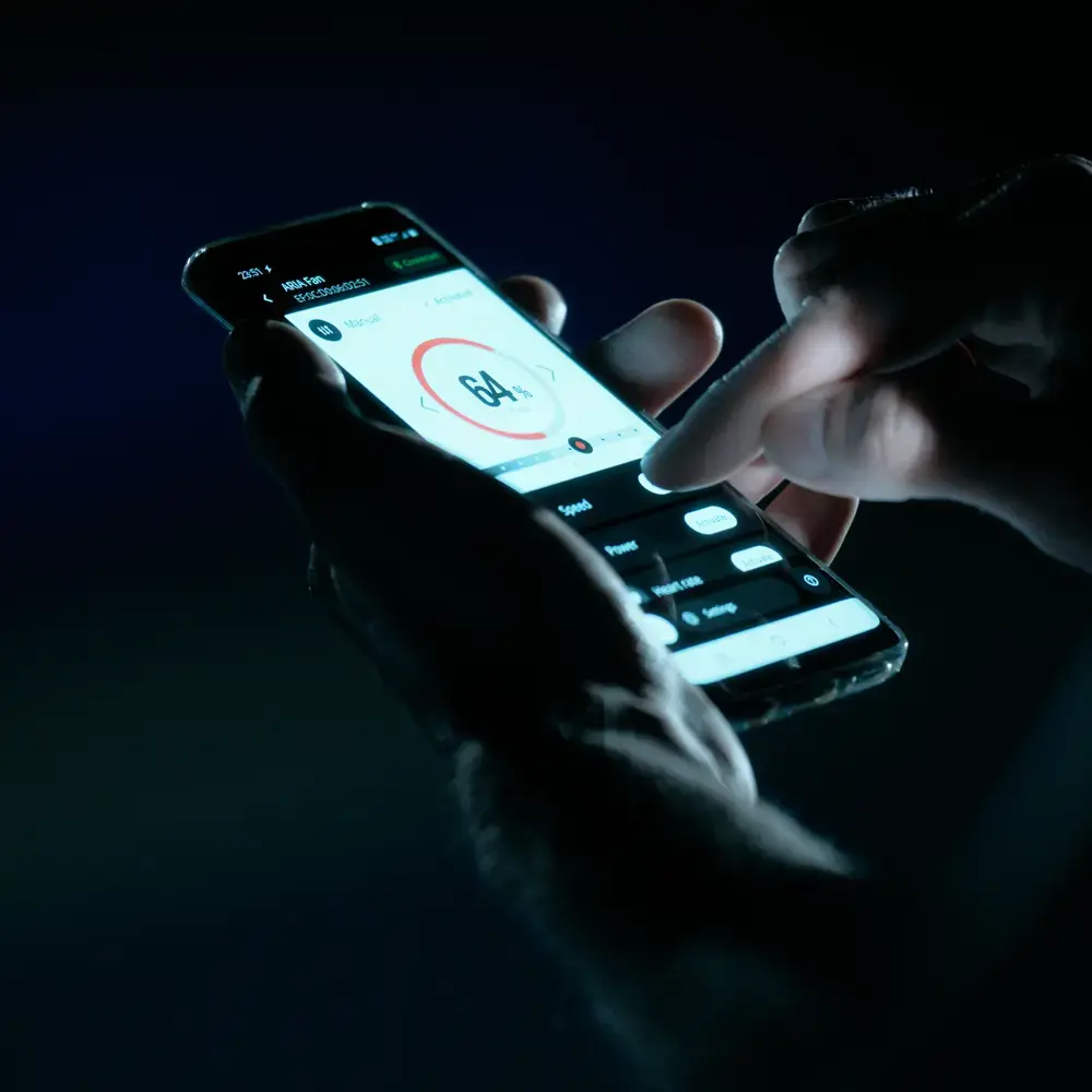 De hoeveelheid wind kan worden aangepast op basis van jouw inspanningen. Je koppelt een sensor aan de ventilator om die aanpassingen te laten doen. Dat kan een snelheidssensor, vermogensmeter, hartslagband of zelf thermometer zijn. Je kunt natuurlijk ook een fietstrainer koppelen. Zolang hij maar via ANT+ kan communiceren (hartslag mag ook via Bluetooth). Wil je hem niet automatisch laten aanpassen? Dan kun je de ventilator ook bedienen met de E-training app van Elite (geen abonnement nodig). Tot slot zit er een bedieningspaneeltje op de ventilator zelf.