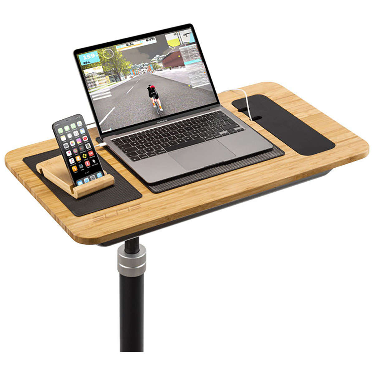 De trainer desk van Elite is volledig opvouwbaar en gemakkelijk op te bergen; eenvoudig in elkaar te vouwen en dan is hij geen sta-in-de-weg. De desk is goed op hoogte instelbaar en door de wieltjes kun je hem tot dichtbij je voorwiel naar je toe trekken. In het opbergvak kun je snoeren en stekkers bergen. Een groot werkblad is geschikt voor laptop of TV