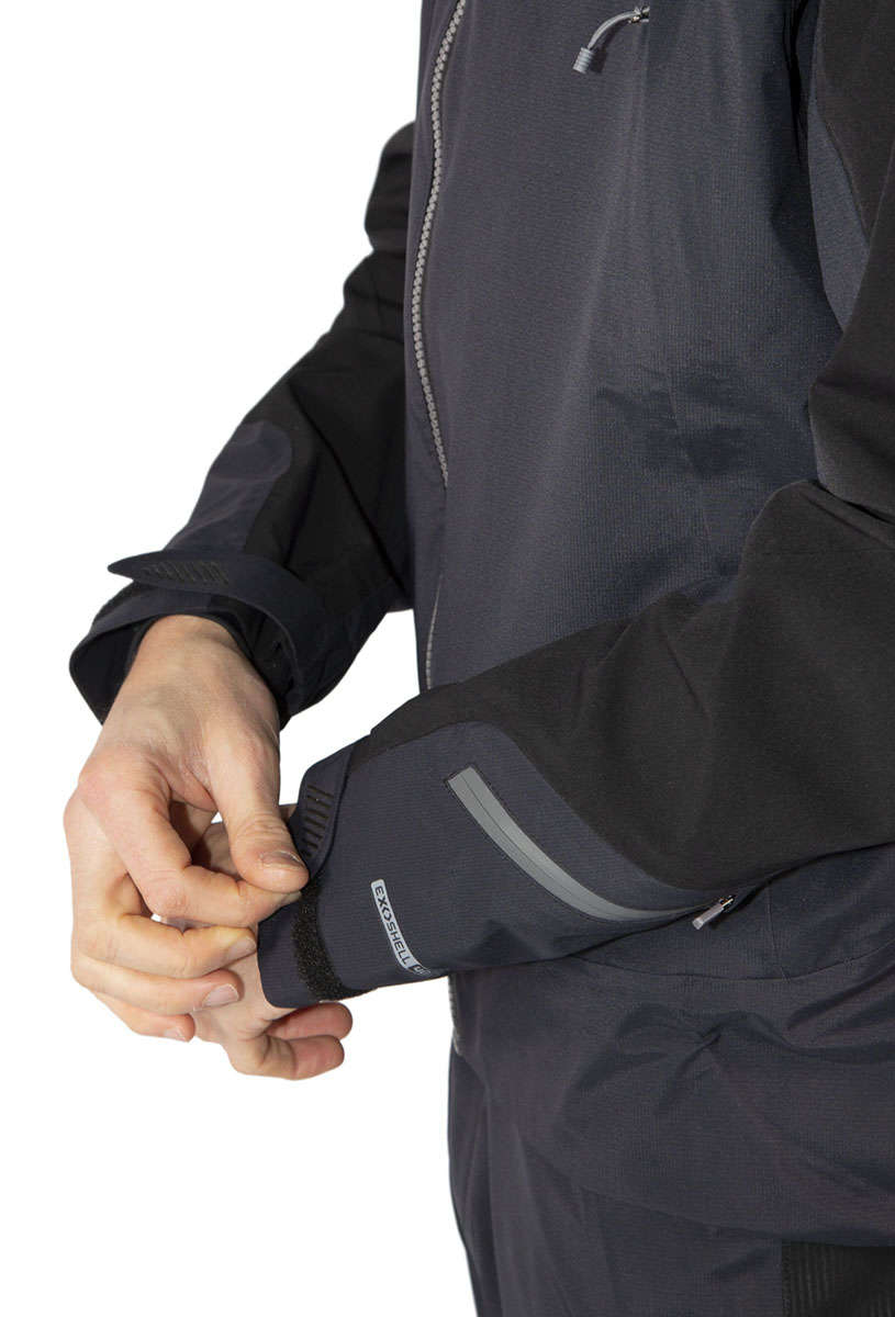 ExoShell40DR™Dit high-end materiaal is extreem waterdicht en heeft een immens groot ademend vermogen. Een waterkolom van 20.000mm zorgt ervoor dat er geen druppel binnen komt en een ademend vermogen van maar liefst 40.000g/m2/24hr houdt je extreem droog van binnenuit. Het geheim van de stof is het ultradunne (fluorine vrije) membraan dat 50% dunner is dan membranen met dezelfde eigenschappen. Hierdoor is de stof ook erg licht en compact op de bergen. Deze DR variant is voorzien van een extra stevige buitenlaag waardoor het beter bestand is tegen ruige omstandigheden. Het materiaal is afgewerkt met een milieuvriendelijke PFC vrije DWR coating waardoor het waterafstotend is.