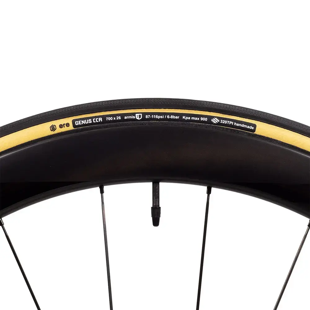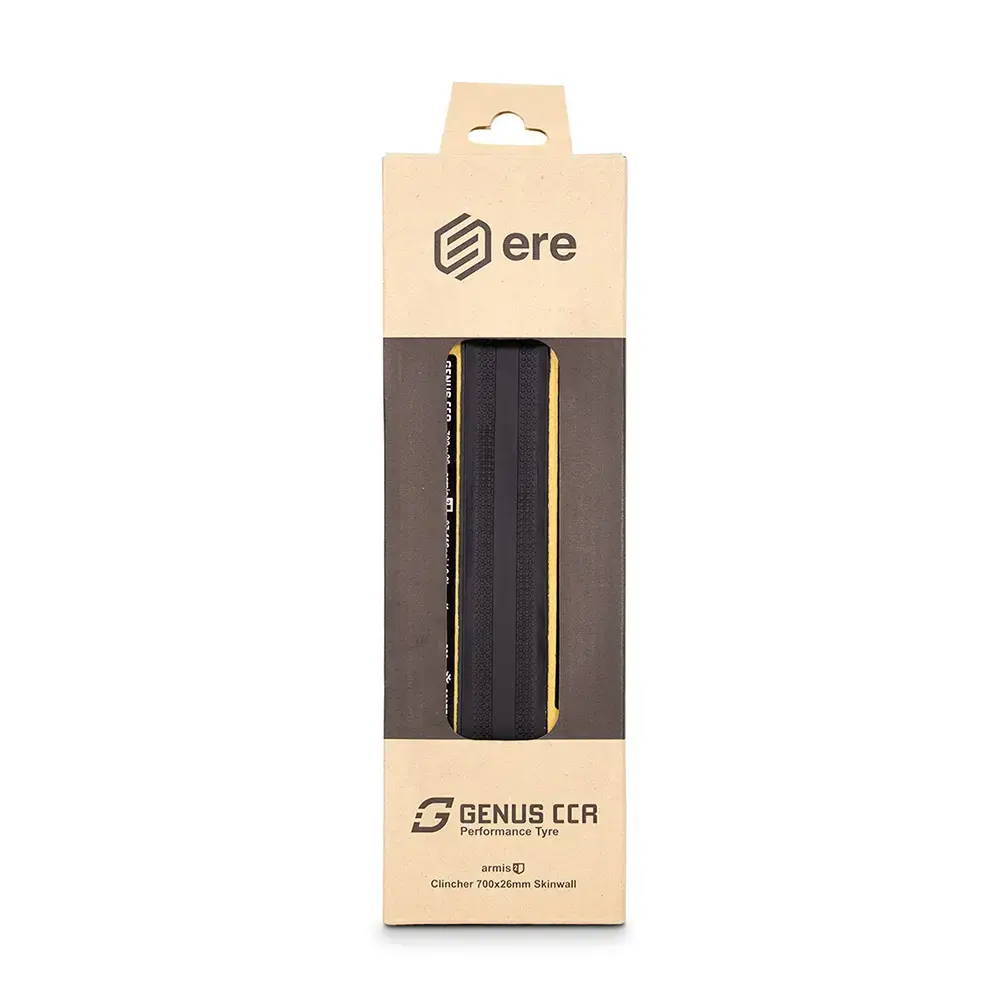 De Ere Research Genus CCR ProRoad Clincher Race vouwband is dé wedstrijdband van Ere Research. Na jaren ervaring en duizenden kilometers testen van racewinnende producten, brengt Ere als zijn kennis samen in deze ene band. De band biedt dan ook een ongeëvenaarde snelheid, comfort en zekerheid in de bochten. Dankzij een hoogwaardig en duurzaam ontwerp is deze band zowel vederlicht, als uiterst betrouwbaar. Ook bij het scherp aansnijden van een bocht om zo min mogelijk tijd te verliezen op je concurrenten behoud je voldoende grip. De rolweerstand is zo laag mogelijk gehouden voor maximale snelheid. Een Armis 2 lekprotectiesyteem staat garant voor vele kilometers zonder lek te rijden. De band heeft een TPI (threads per Square Inch) van 320. Dat betekent dat de band extreem soepel is en zich makkelijk vormt naar de ondergrond. Dat resulteert in goede grip en lage rolweestand.