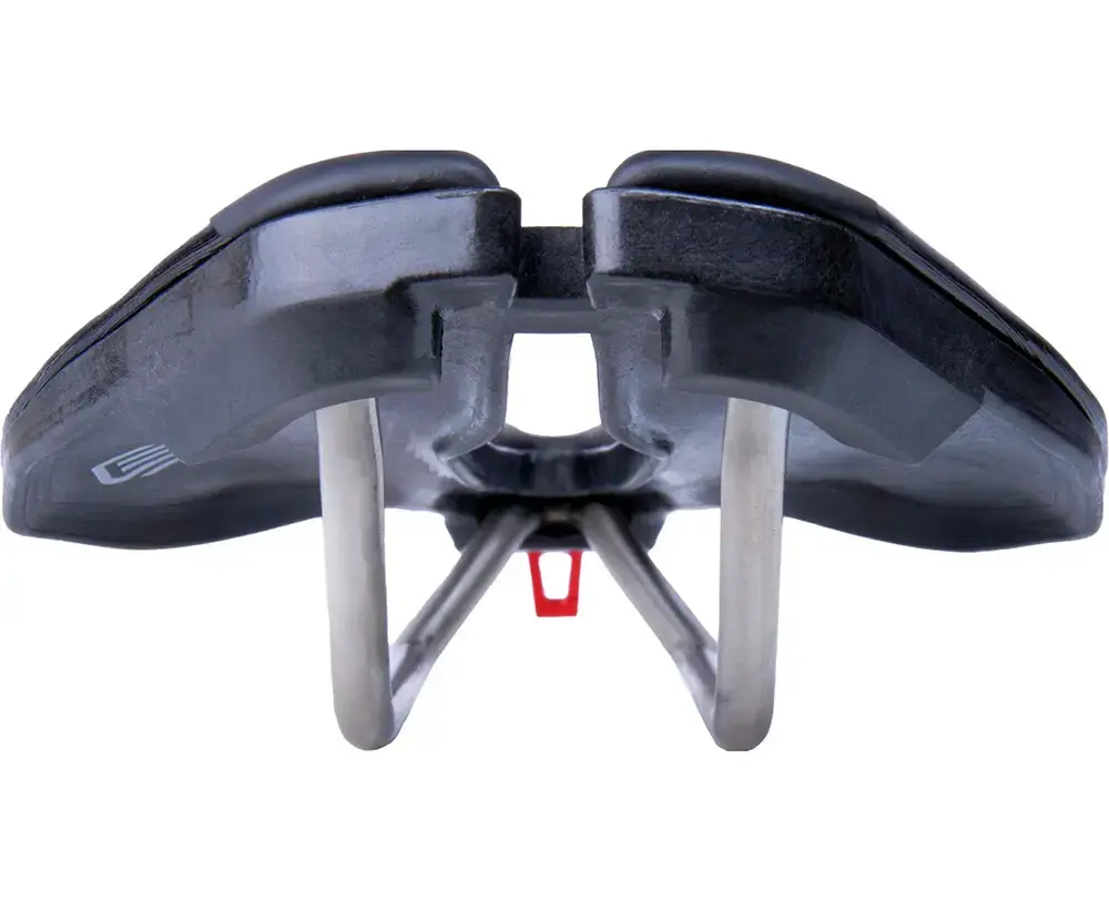 Het Ere Research Genus Pro TT Fietszadel is een echte topper. Het speciale CT (comfort trigger) systeem maakt dit zadel zo bijzonder. Het systeem bestaat uit een hendeltje aan de voorzijde van het zadel. Hiermee kan je het zadel of extra stijf of extra comfortabel maken. Ideaal wanneer je van een kasseien strook overgaat in een klim. De comfort trigger kent 3 standen, waarmee je tot een 10 Nm stijfheid kunt toevoegen of verminderen. Het zadel heeft een ruime uitsparing in het midden zitten en beweegt goed met het lichaam mee. De bovenzijde is gemaakt van duurzaam materiaal dat comfortabel zit. Het zadel is heeft een schaal van carbon en een rails van titanium. Dit maakt het zadel zowel extreem licht als stijf.