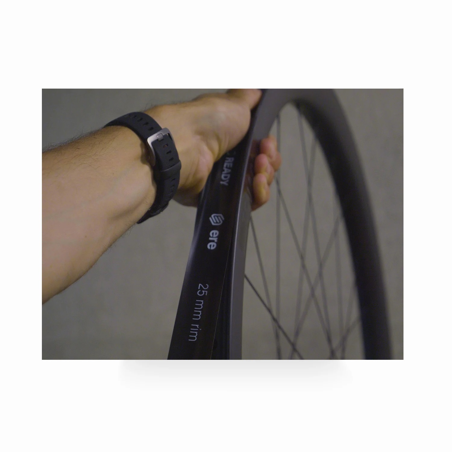 Het ProClose Velglint van Ere Research maakt een luchtdichte seal in ieder wiel en maakt het zo Tubeless Ready. Het lint is breed genoeg gemaakt om een rand-tot-rand luchtafdichting te bieden die voorkomt dat lucht of sealant uit de rand van de velg kruipt. De praktische maatmarkeringen op de tape zelf helpt bij het vinden van de juiste maat. Er zijn drie verschillende breedtes beschikbaar: 21, 23 en 25 mm. Dat is de maat voor welke interne velgbreedte het lint geschikt is. Dat maakt ProClose Velglint geschikt voor elke velg. Eén rol bevat 10 meter velglint, genoeg voor vier enkellaags velgen of twee dubbellaags velgen.